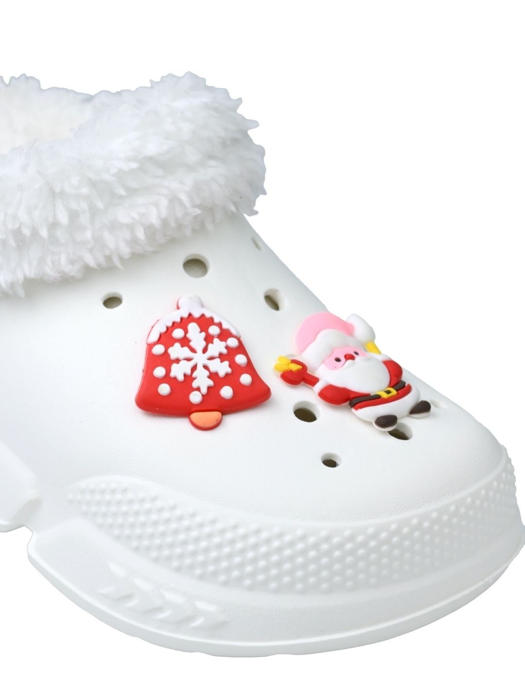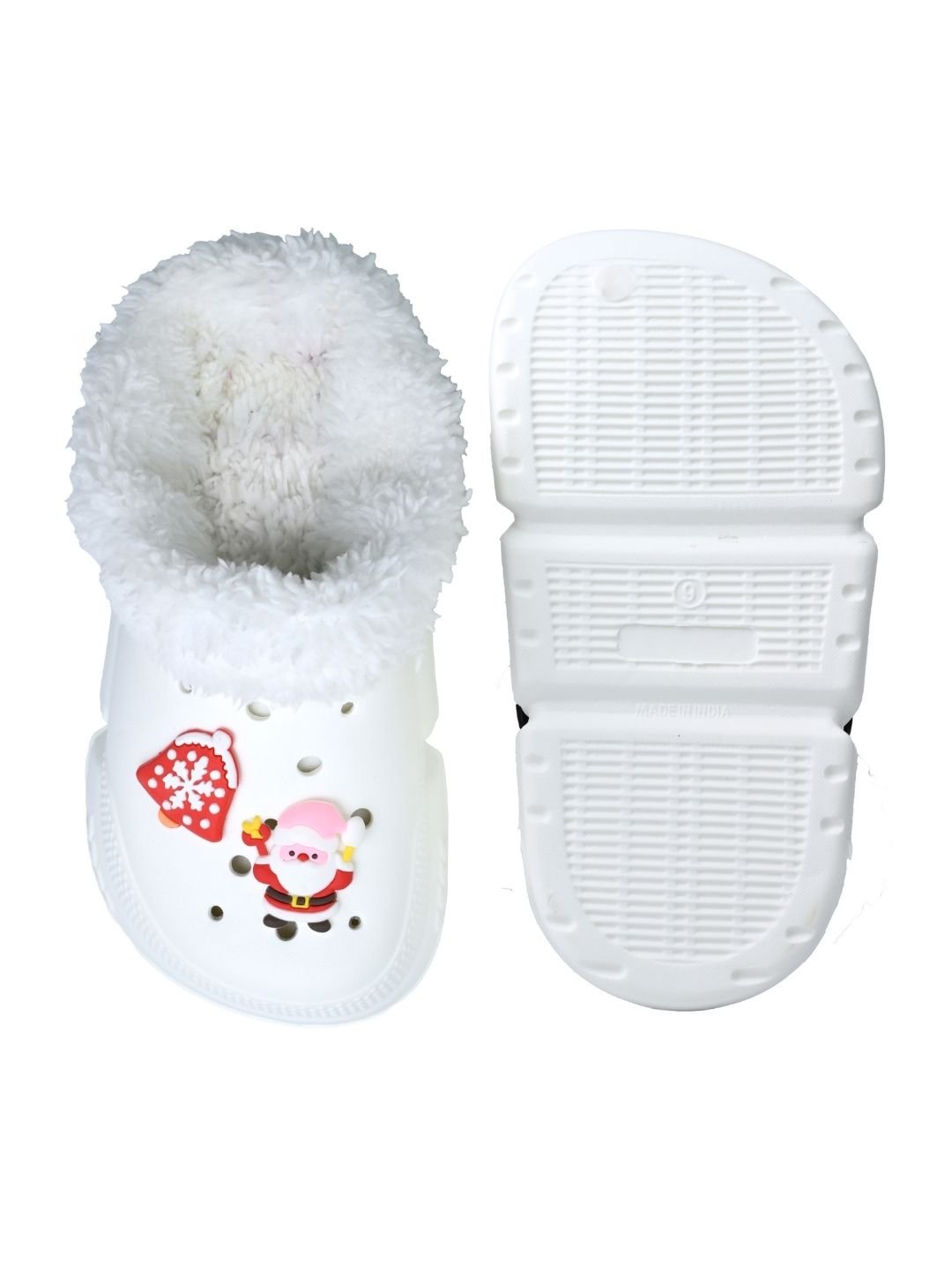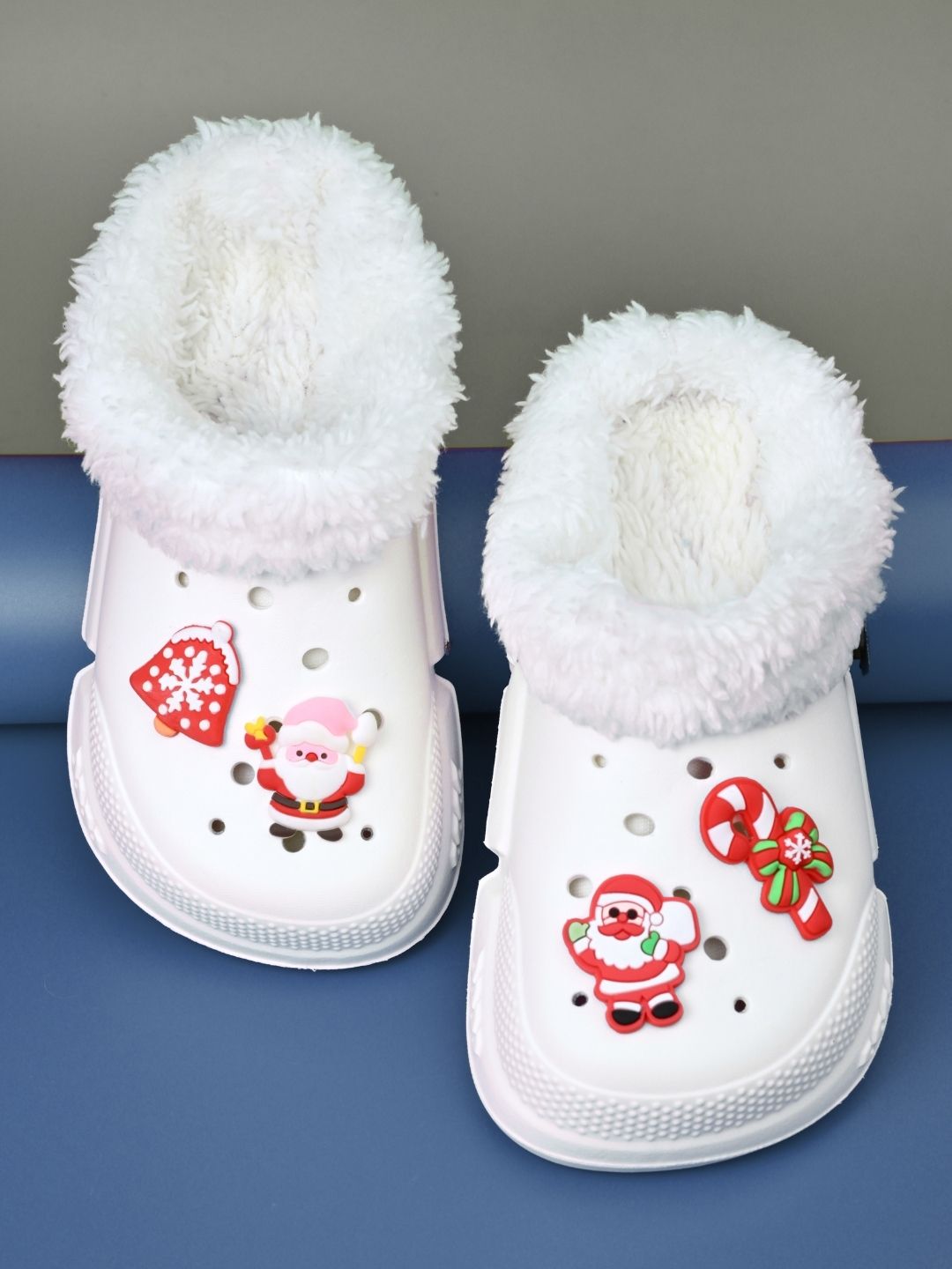 Adorable Winter Fur Lined Clogs with Santa & Candy Charms for Boys & Girls -White