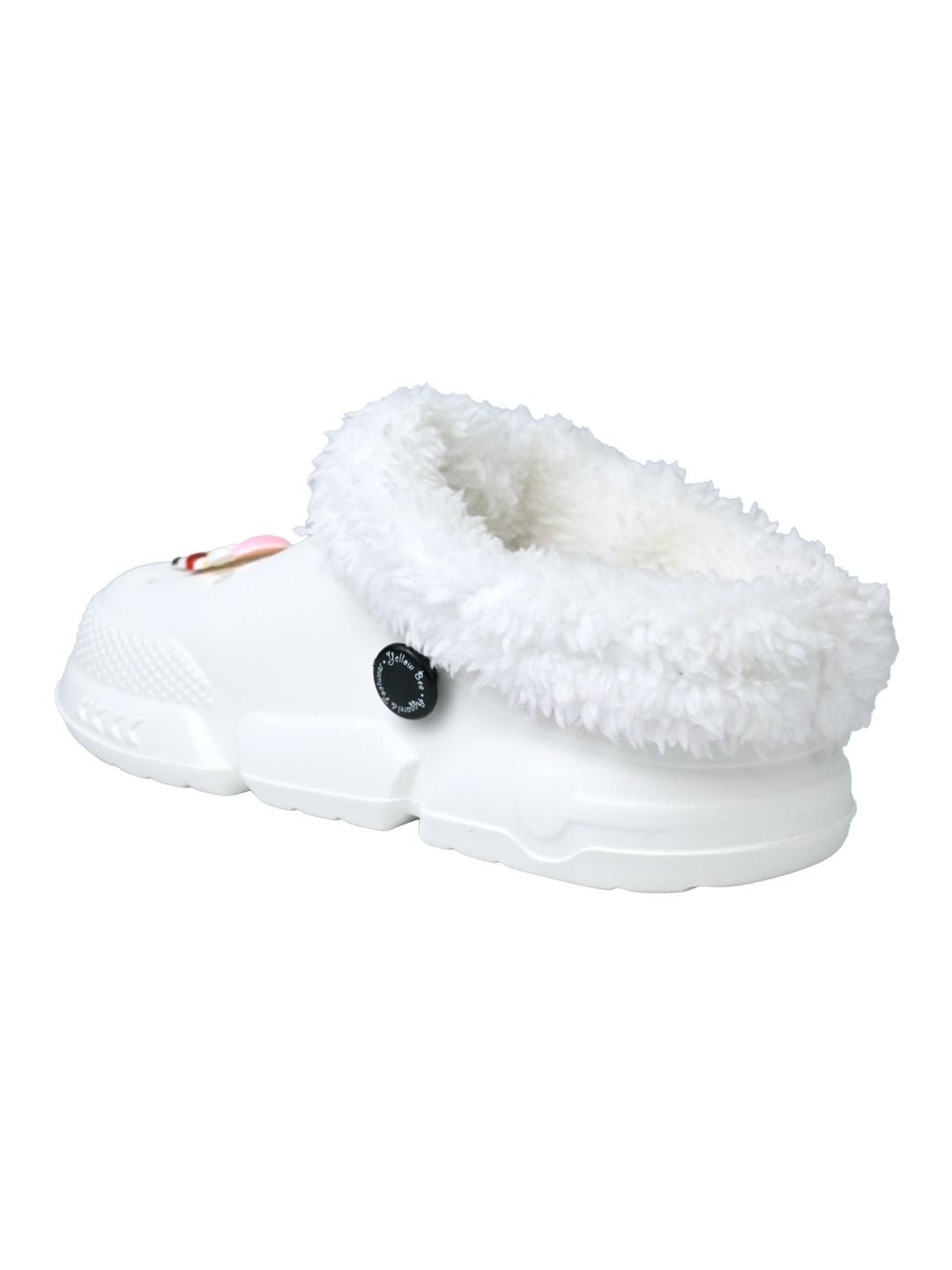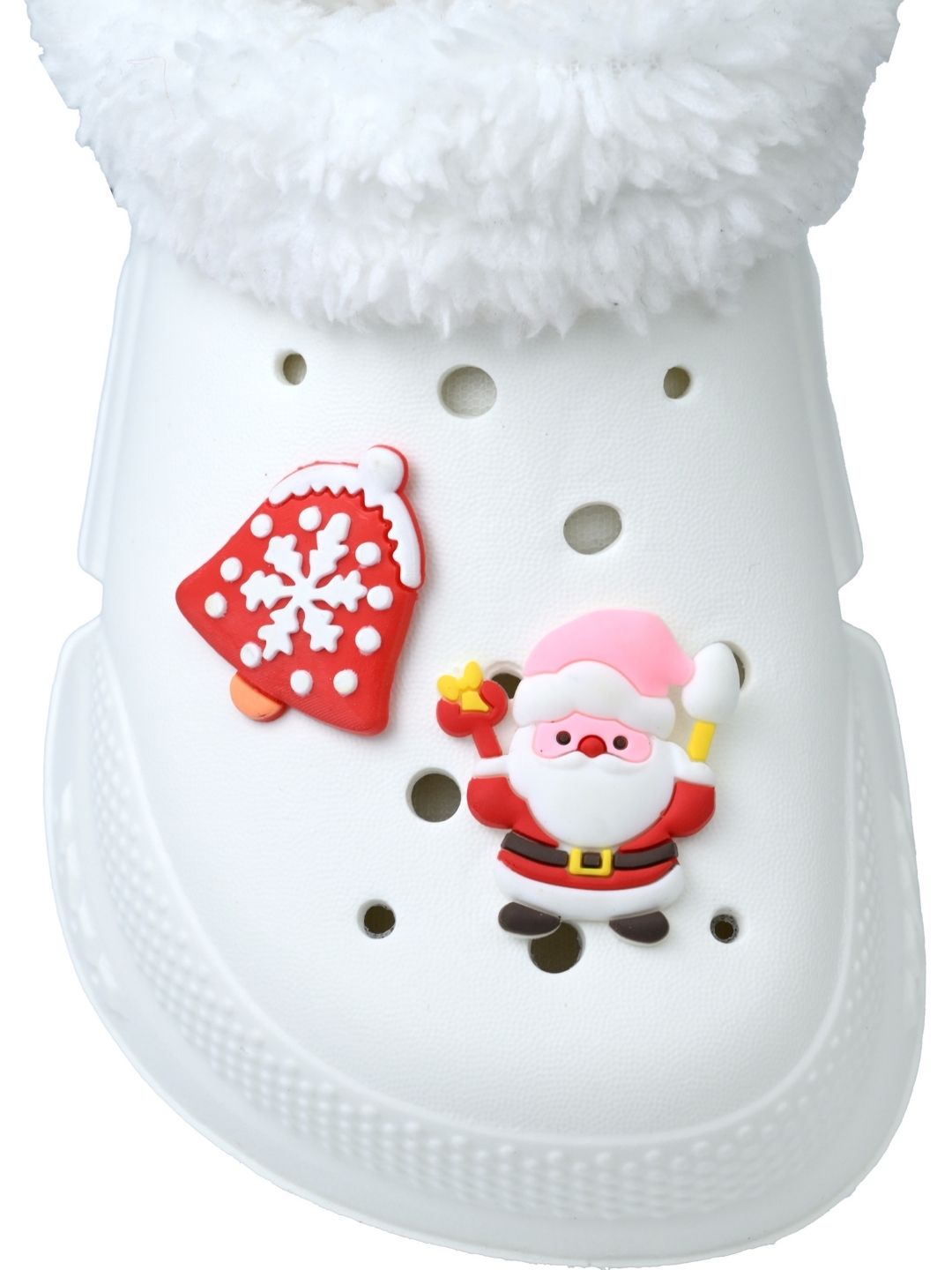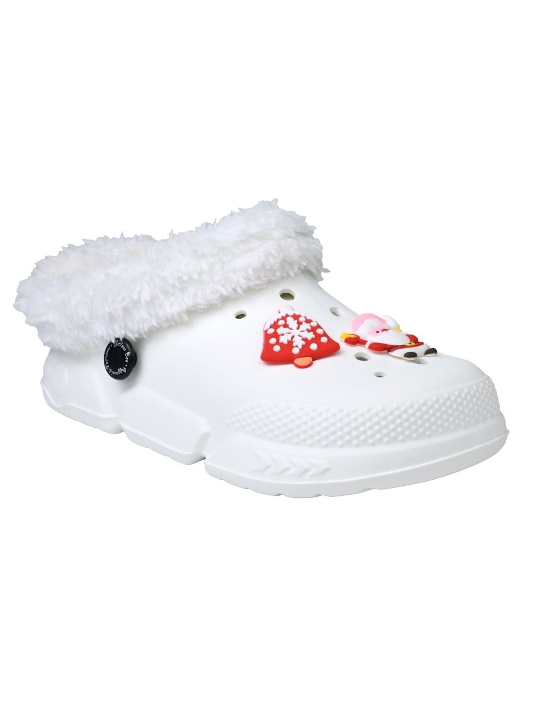 Adorable Winter Fur Lined Clogs with Santa & Candy Charms for Boys & Girls -White