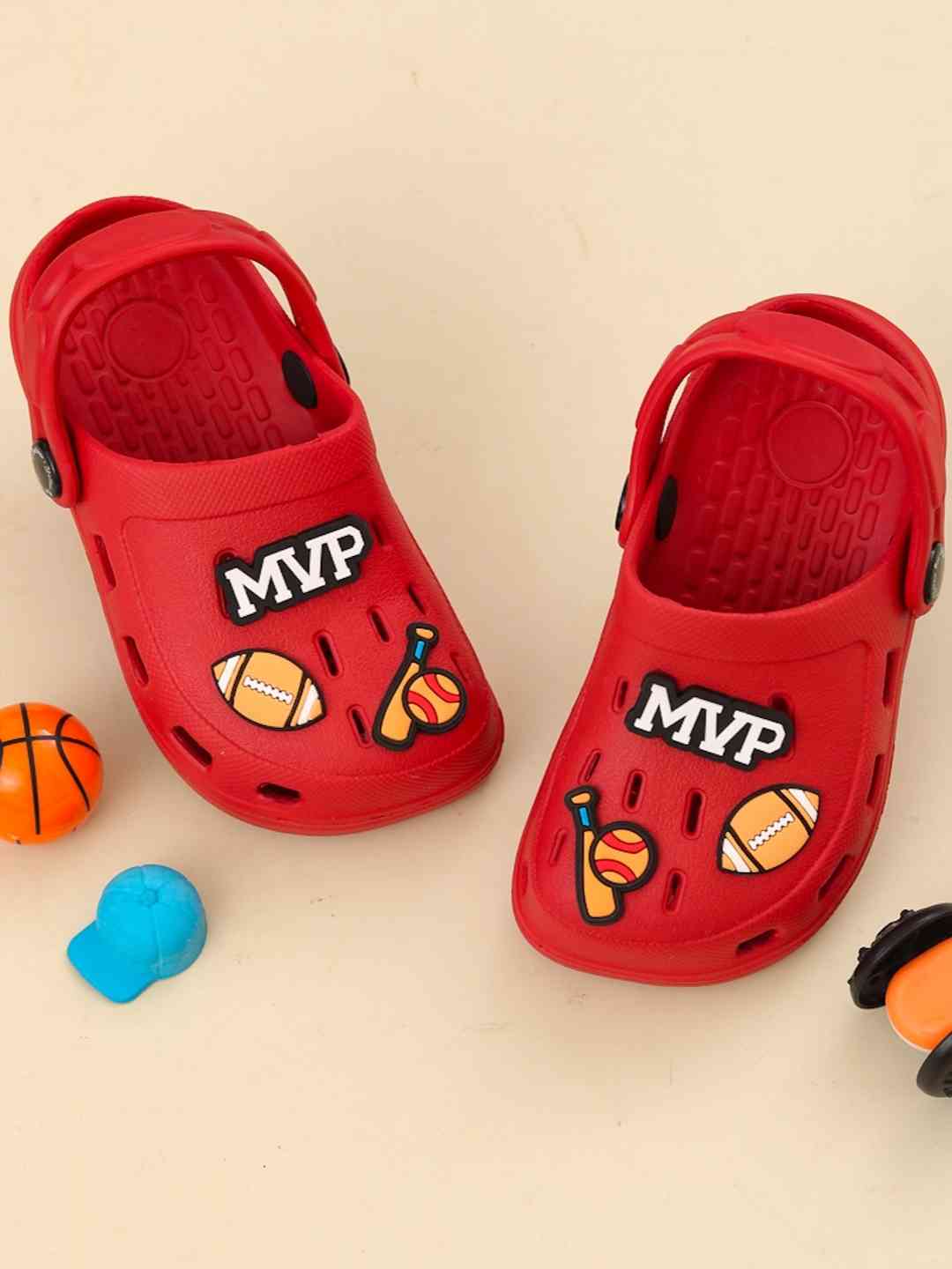 Athletic Red Clogs with MVP, American Football, Baseball & Bat Charms for Boys
