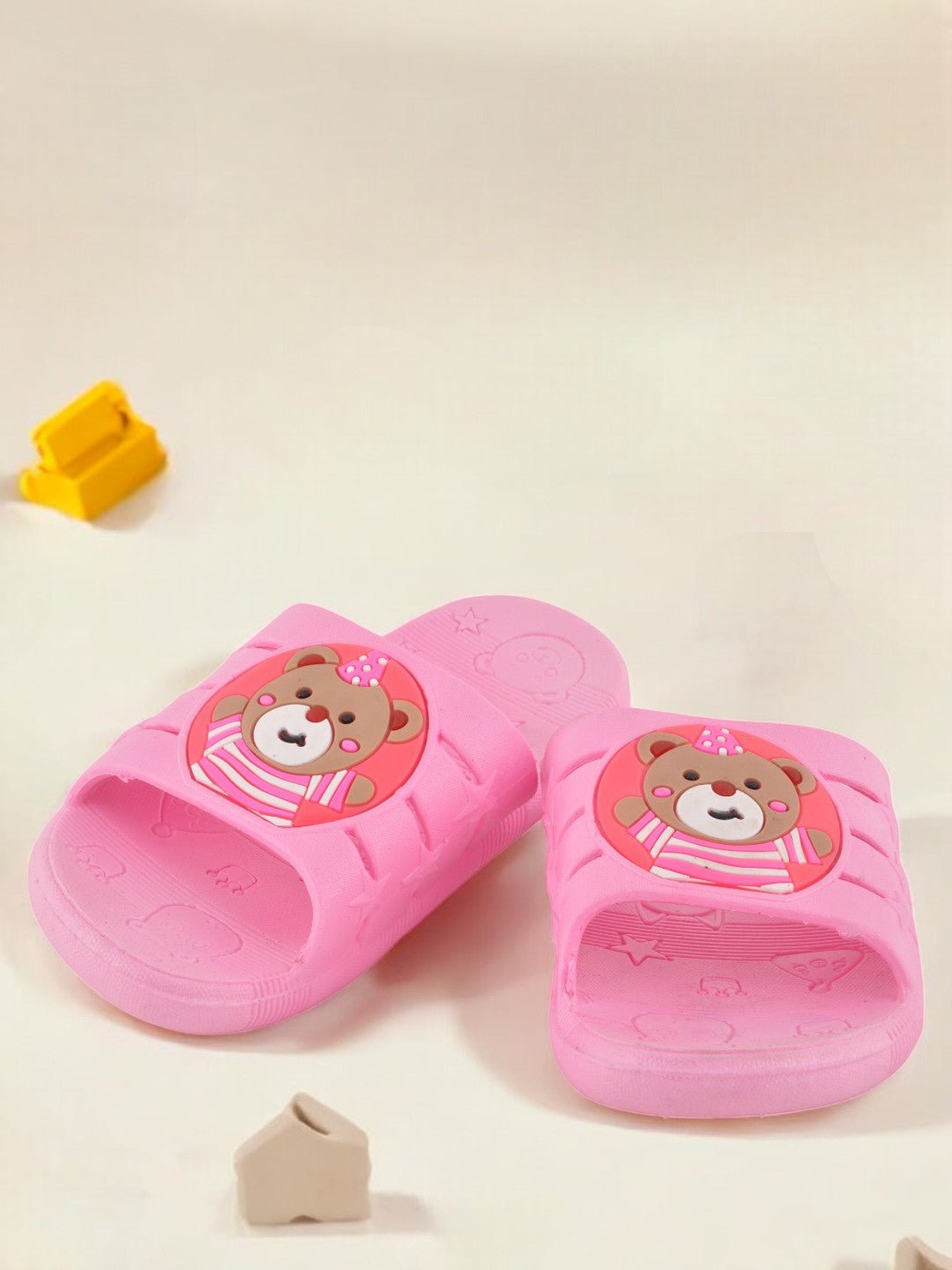 Step into charm and comfort with the Bear Theme Slides for Girls in a delightful light pink hue. These slides feature a cute bear pattern, making them an instant favorite for little ones. Designed for all-day comfort, they are perfect for playdates, outings, or lounging at home. With a lightweight EVA construction and a slip-on design, these slides are both practical and stylish.