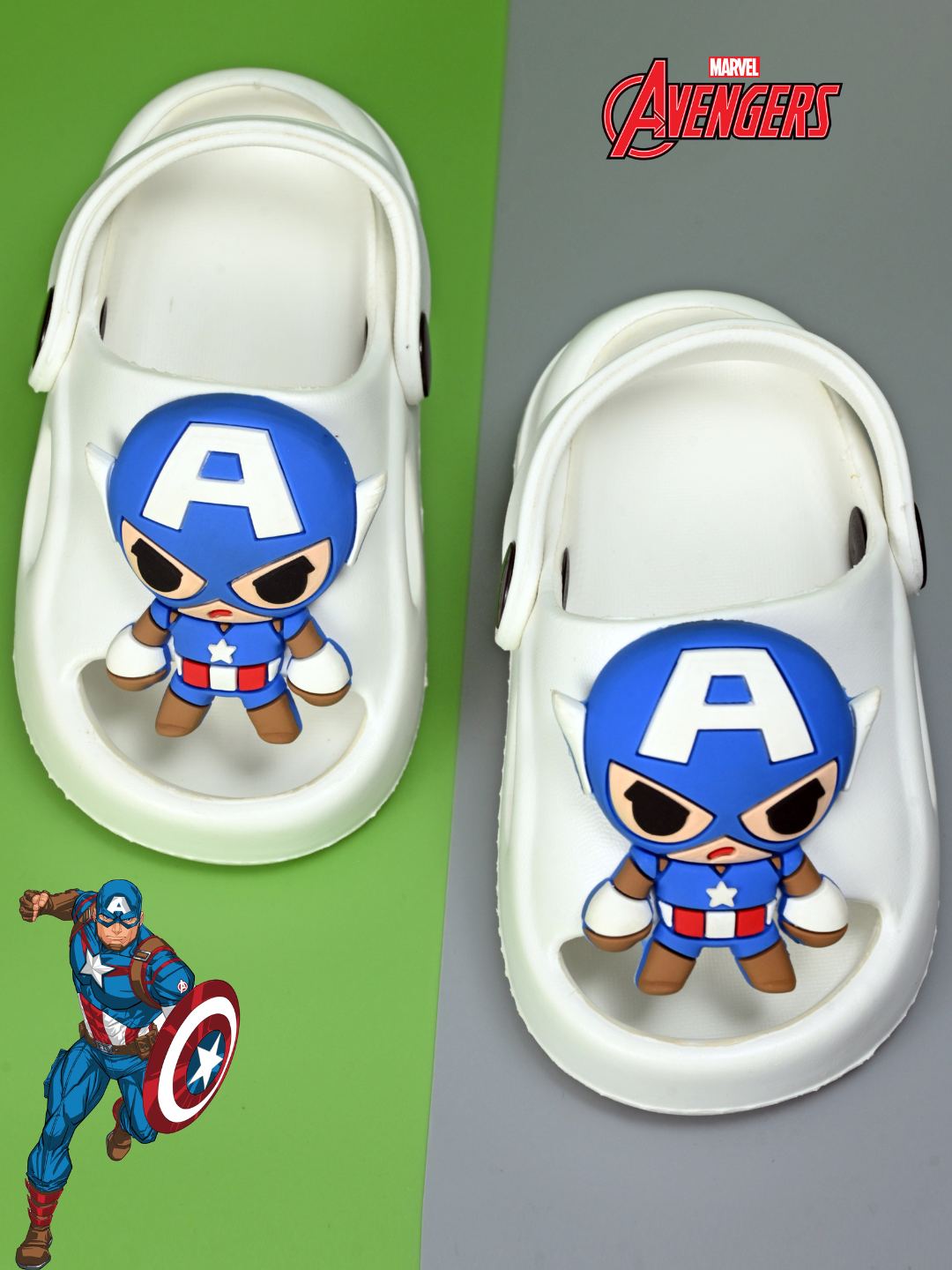 Marvel Superhero Charm - Eye-catching Captain America cartoon charms make these sandals a must-have for every young Marvel lover.