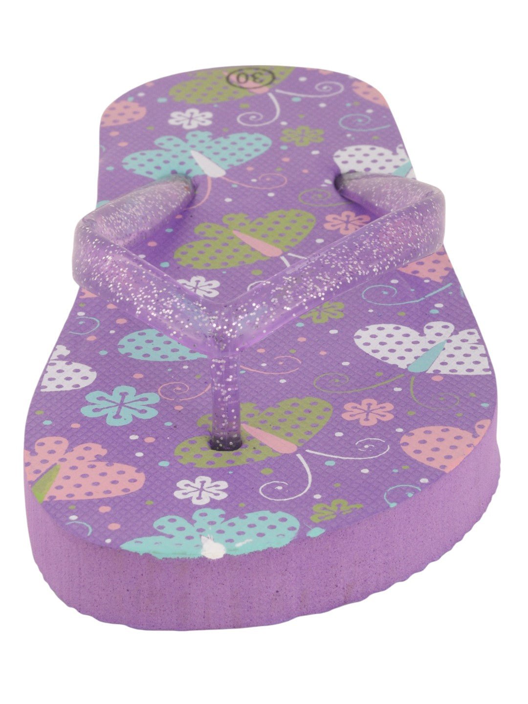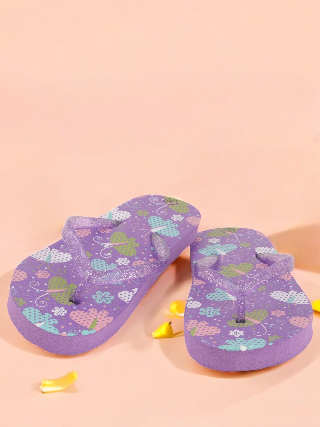 Add a playful touch to your girl's wardrobe with these Butterfly Print Flip-Flops in Purple. Designed for comfort and style, these flip-flops feature a lightweight EVA material and a whimsical butterfly pattern. Perfect for casual outings, summer vacations, or everyday wear, they combine practicality with vibrant charm. Easy to slip on and durable enough for all-day adventures, these flip-flops are a must-have for your little one.