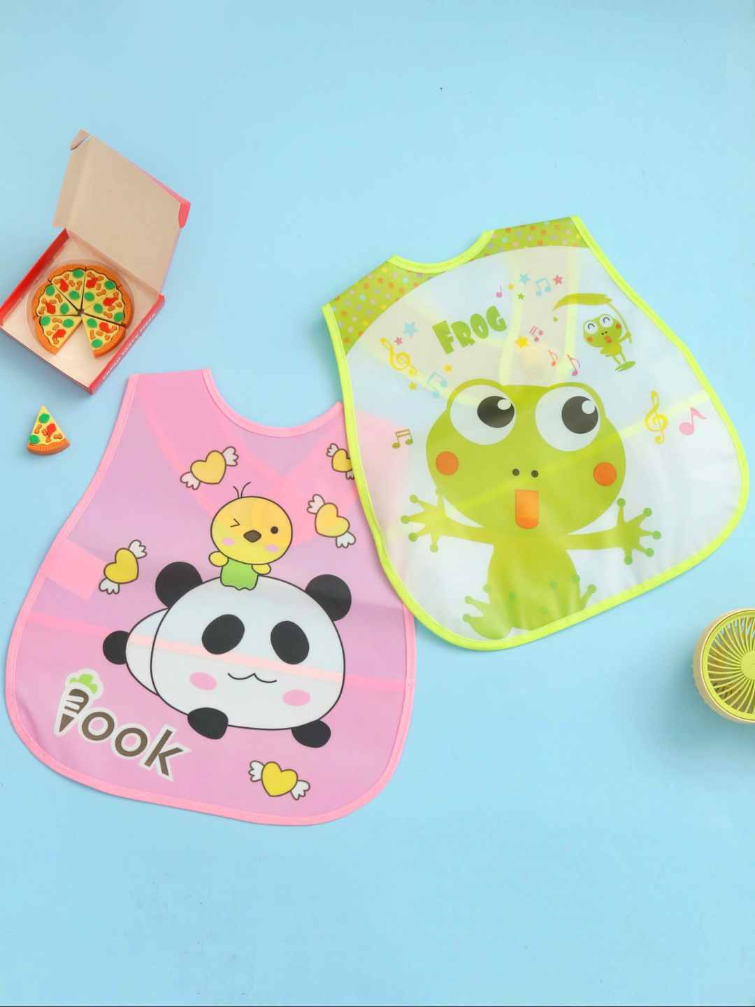 Bring fun, color, and complete protection to mealtime with the Yellow Bee Waterproof Bib Combo, featuring two adorable prints—a lively musical frog and a sweet panda with chick design. Crafted from waterproof plastic, these bibs keep clothes spotless while making every bite a little more cheerful for your little one.