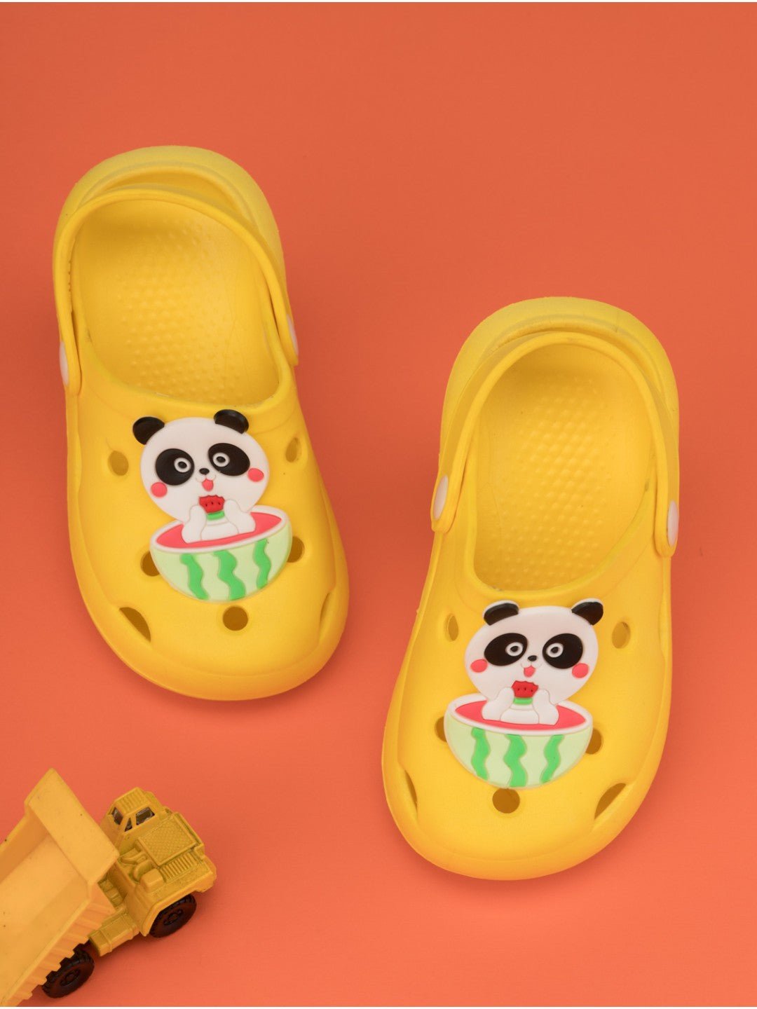 Charming Panda & Watermelon Design Clogs for Boys – Bright Yellow