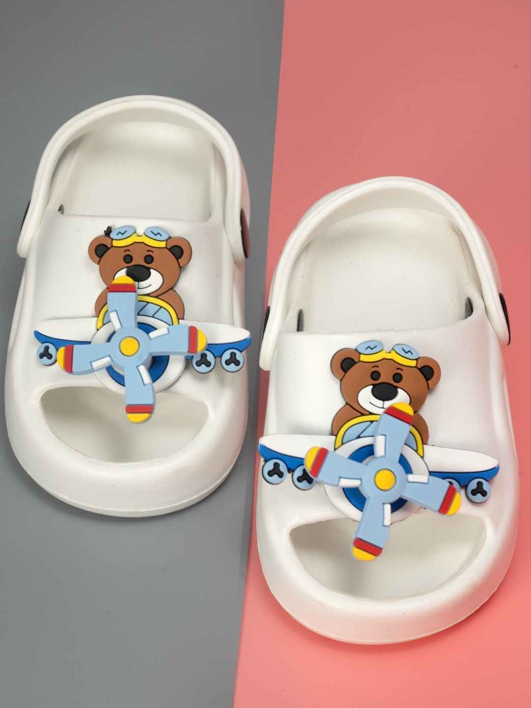 Take playtime to new heights with the Yellow Bee Charming Pilot Bear & Plane Rotating Charms Sandals for Boys – White. Designed with a fun pilot bear and airplane rotating charms, these sandals bring excitement and imagination to every step. Crafted from lightweight EVA material, they are soft, comfortable, and durable, making them a perfect companion for active boys.