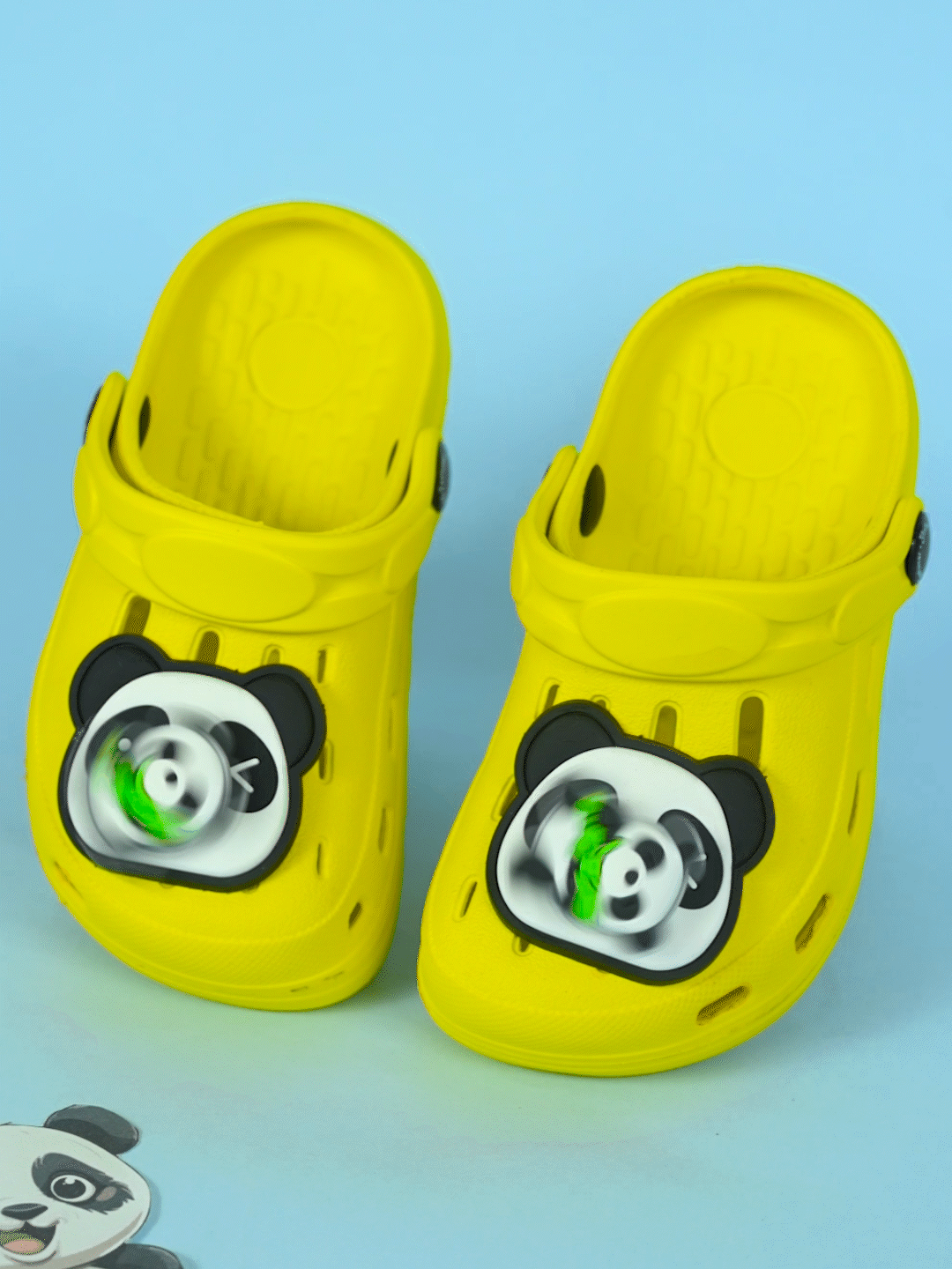 Cheerful and Eye-Catching Panda & Bamboo Rotating Charms Clogs for Boys-Yellow