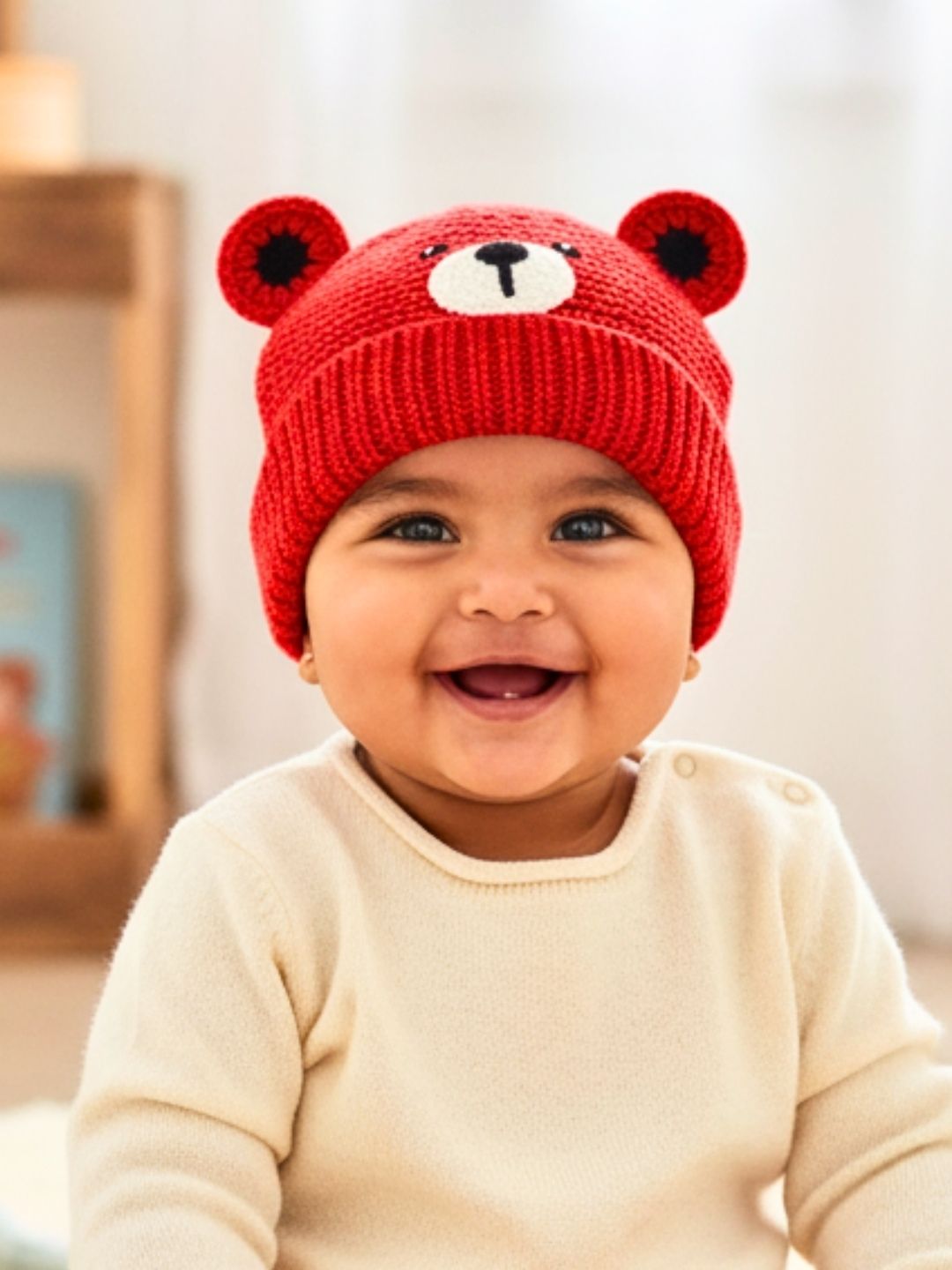 Playful Teddy Bear Design : Designed with 3D crocheted bear ears and a cute embroidered face, it adds instant charm to your child’s outfit. Perfect for fun winter photos and gifting occasions.