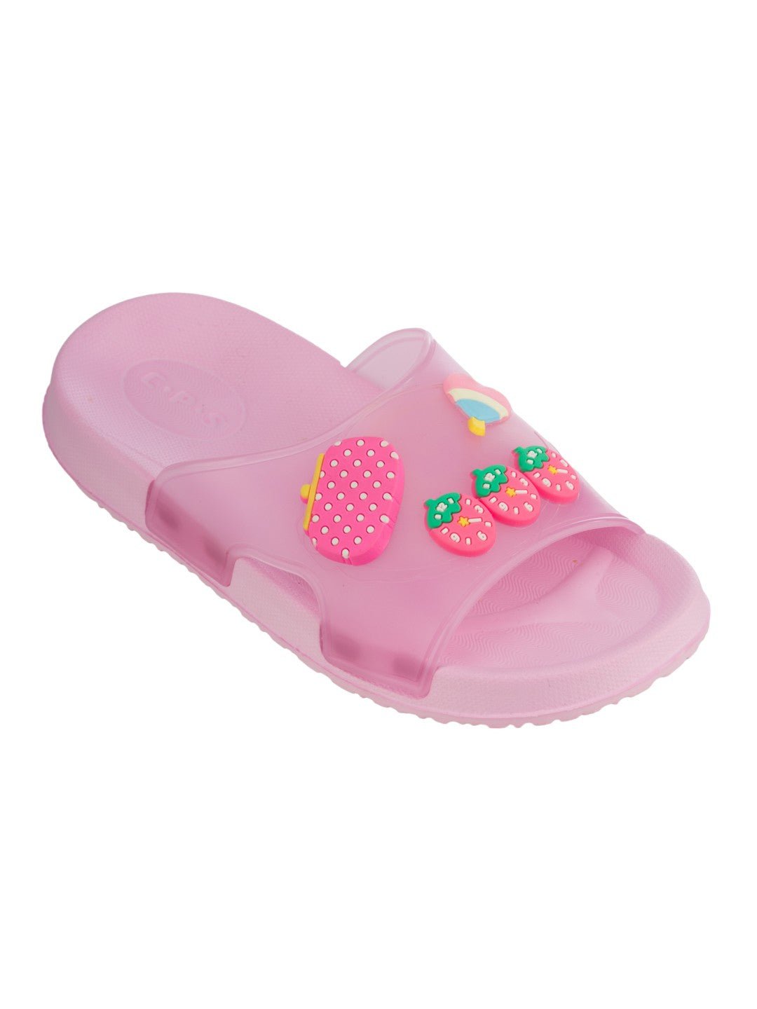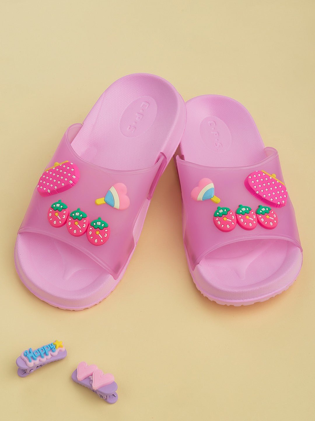Comfy & Colorful Strawberry, Heart Candy & Purse Charms Slides for Girls- Pink
