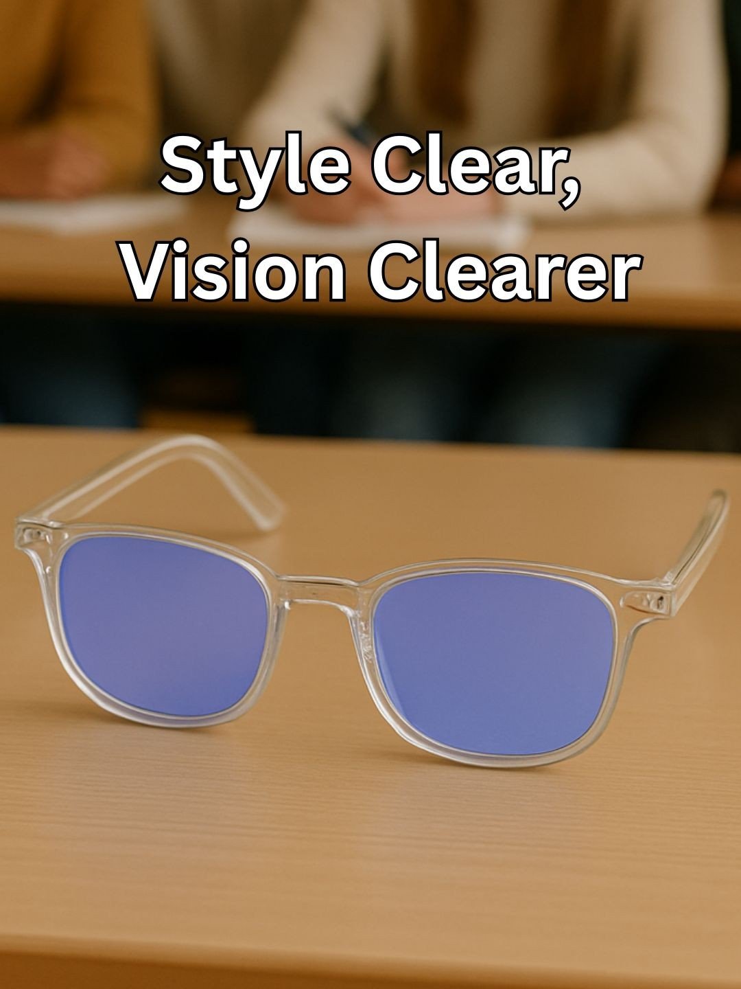 Crystal Clear Frame Design:- Features a fully transparent frame that adds a modern and minimalist edge to any look, perfect for work, study, or daily wear.