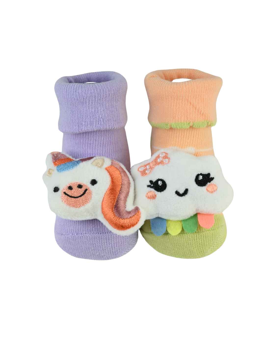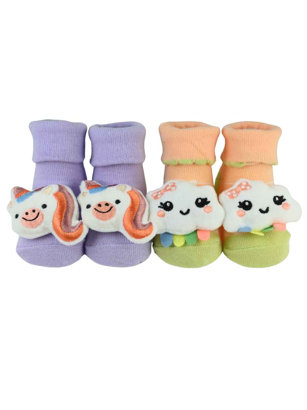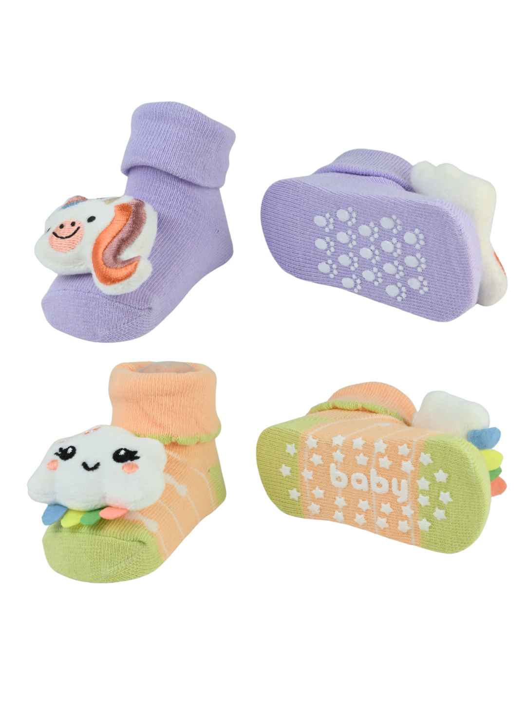 Turn ordinary days into magical moments with Yellow Bee’s Cute & Comfy 3D Unicorn & Cloud Design Socks for Girls. Crafted from 100% soft cotton, these socks offer the perfect mix of comfort, warmth, and playful design. The cuddly 3D unicorn and cheerful cloud plush accents make every outfit sparkle with imagination and joy. With pastel shades of purple and peach, they bring softness, color, and charm to your little one’s every step.