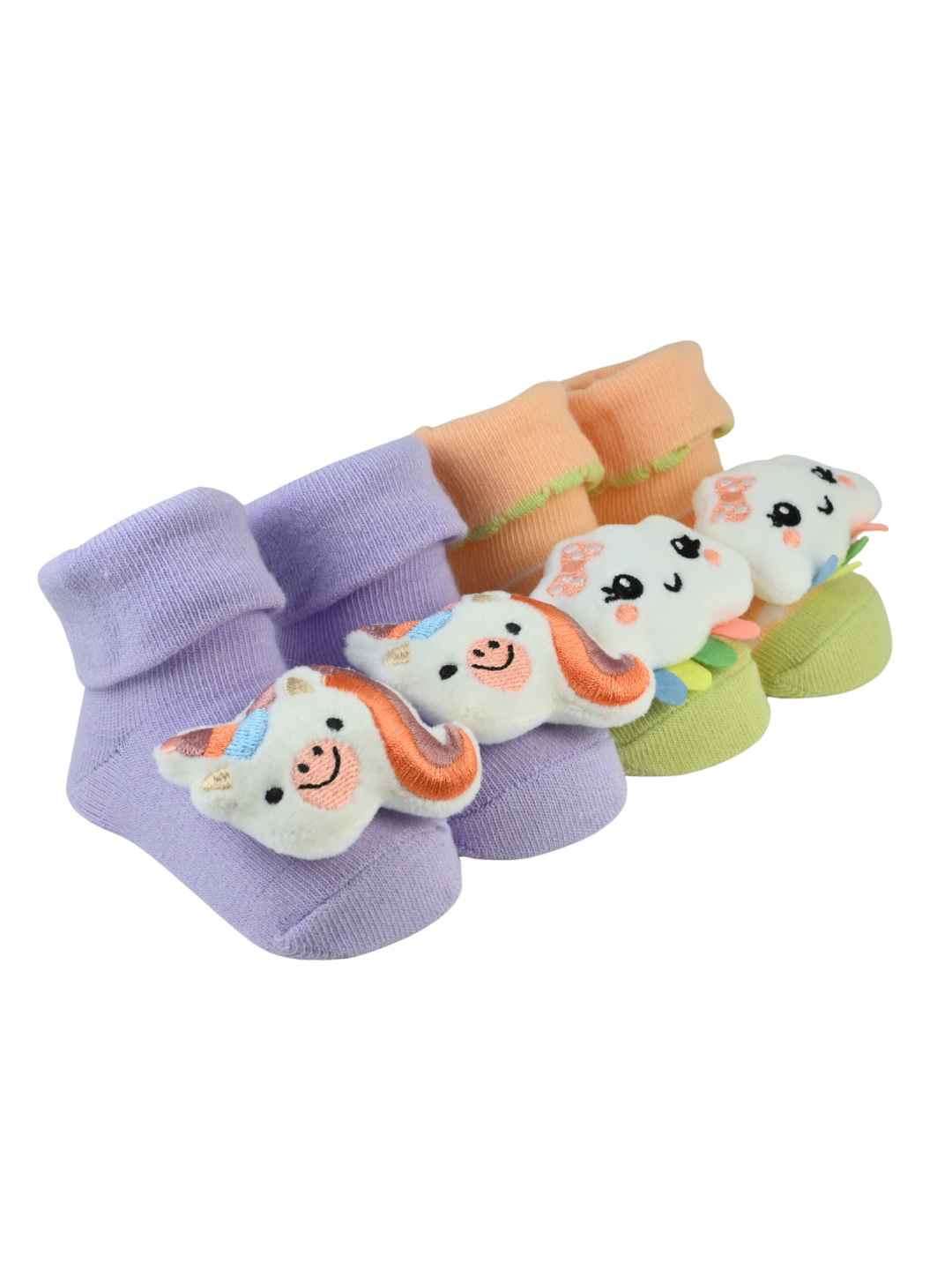 Cute & Comfy 3D Unicorn & Cloud Design Socks For Girls - Purple & Peach