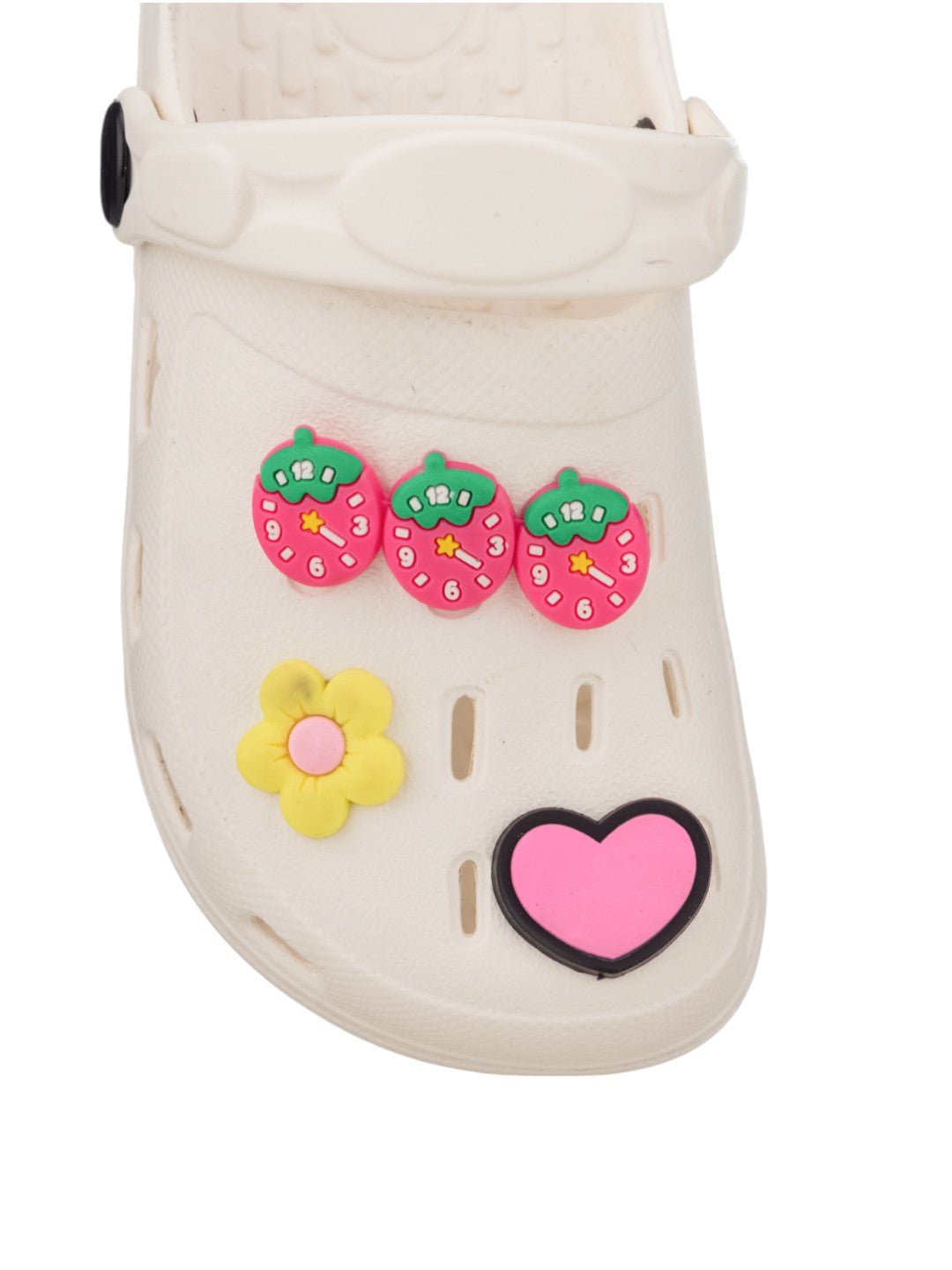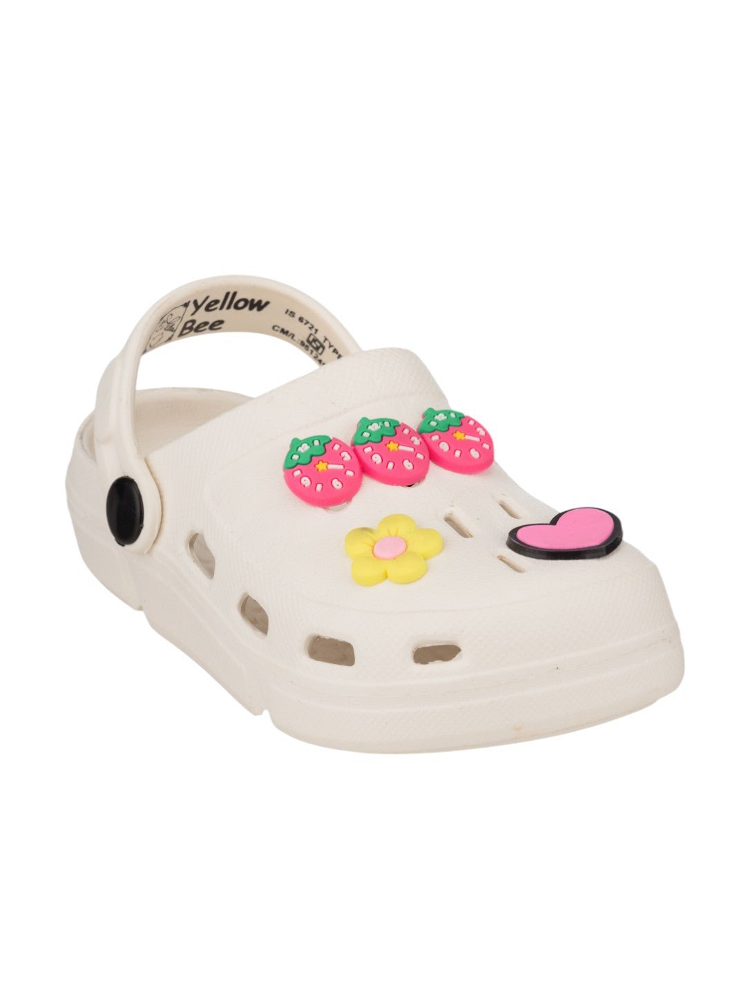 Cute & Comfy Clogs with 3D Strawberry, Flower & Heart Accents for Girls- White