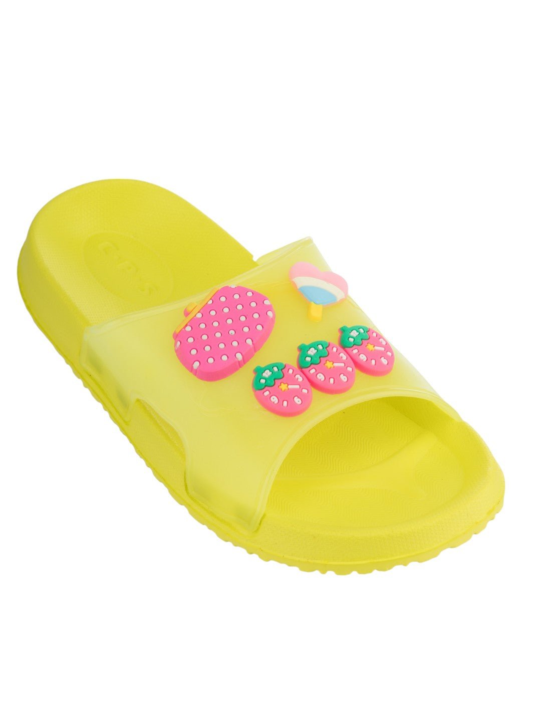 Add a sprinkle of fun and charm to your little one’s wardrobe with the Yellow Bee Cute & Comfy Strawberry, Purse & Heart Candy Charms Slides for Girls – Green. Designed to brighten up everyday wear, these delightful slides feature eye-catching strawberry, purse, and heart candy motifs that bring playful personality to each step. Crafted for comfort and style, they’re perfect for the energetic days of curious little feet!
