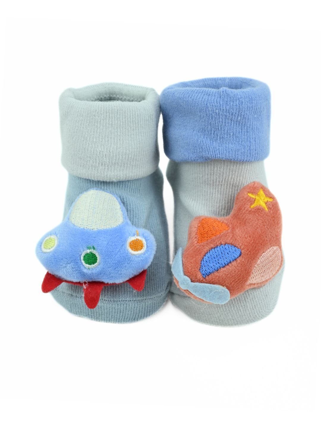 Cute & Stylish 3D Airplane and UFO Design Socks for Boys - Blue & Grey