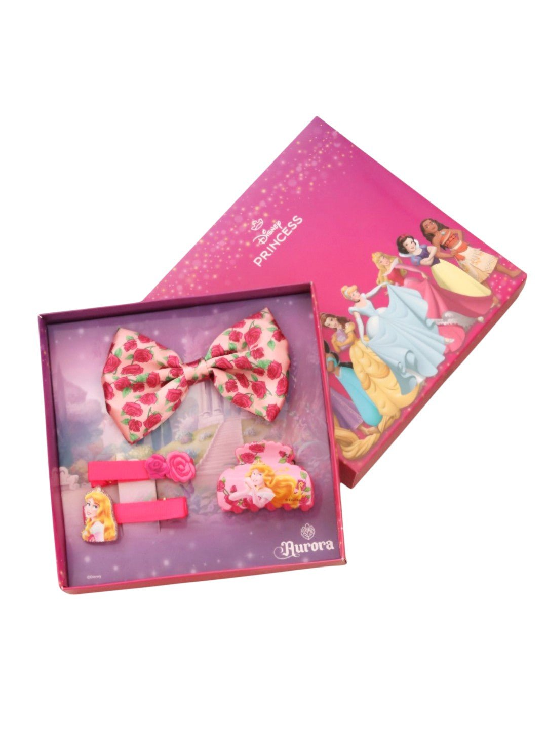This Disney Princess Aurora Hair Essentials Gift Set is perfect for girls, who adore styling their hair with character-themed accessories. Great for school, playdates, parties, or imaginative play, this combo pack is designed for easy, non-slip wear. Simply pair the bow for a statement look, use the clips to hold back bangs, or secure thicker hair with the clutcher for a dreamy princess finish.