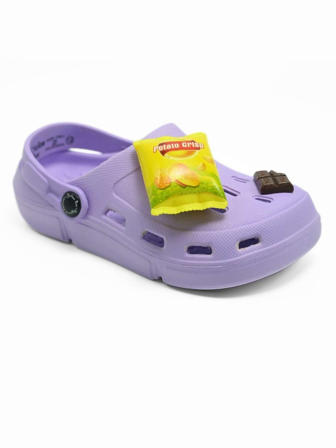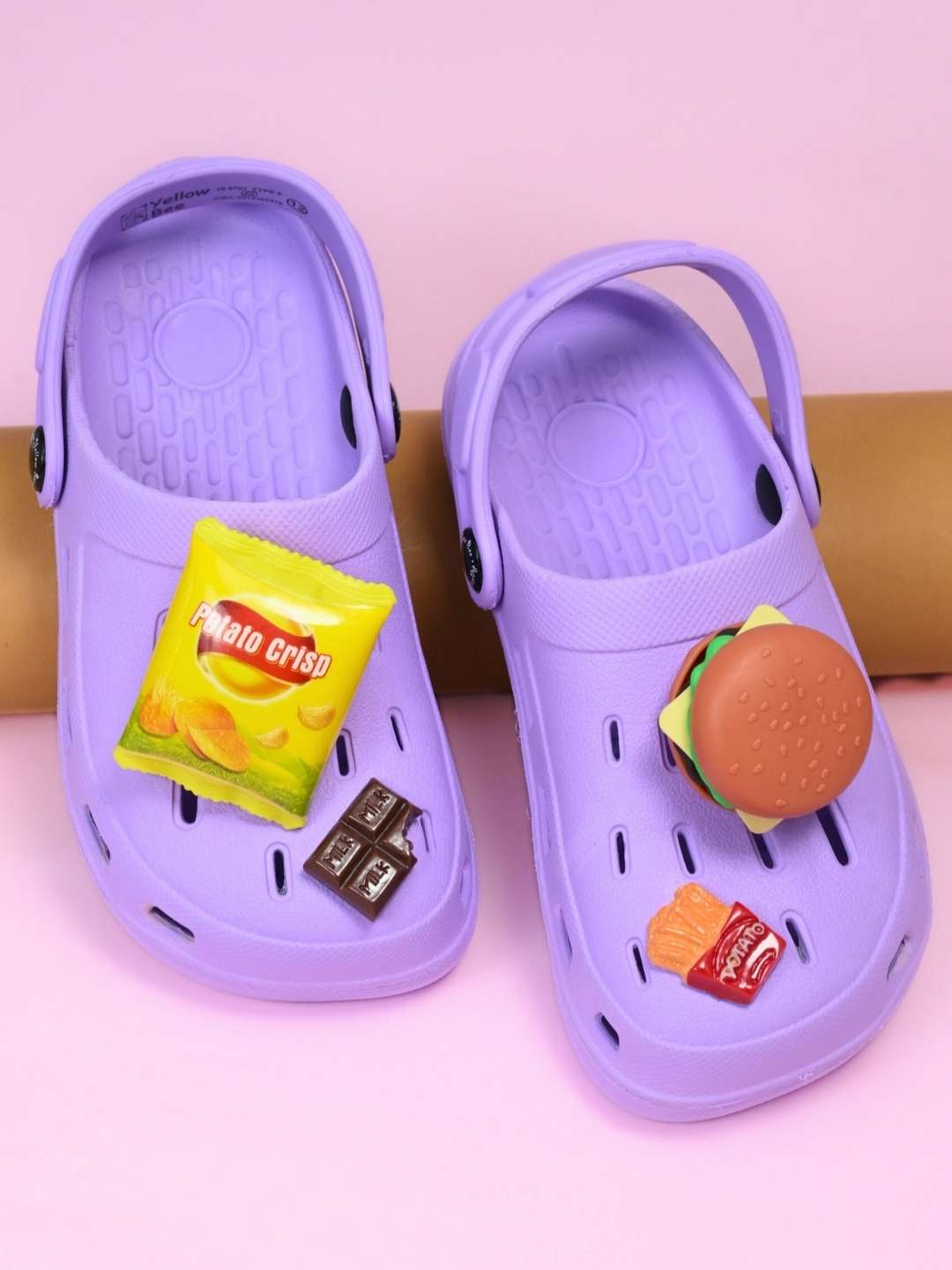 Fun & Colorful Clogs with Burger, Fries and Chocolate Charms for Girls- Purple