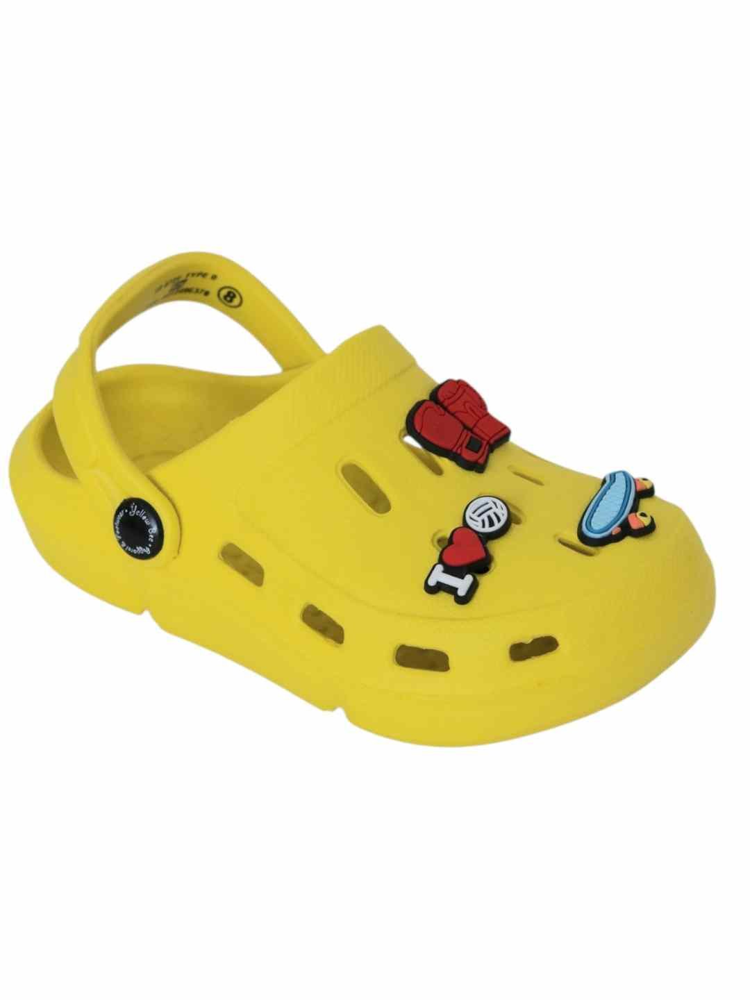 Fun-Themed Yellow Clogs with Boxing Gloves, Skateboard & Love Charm for Boys