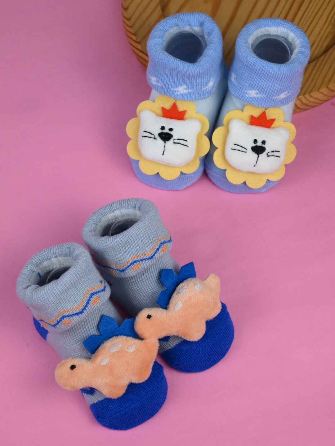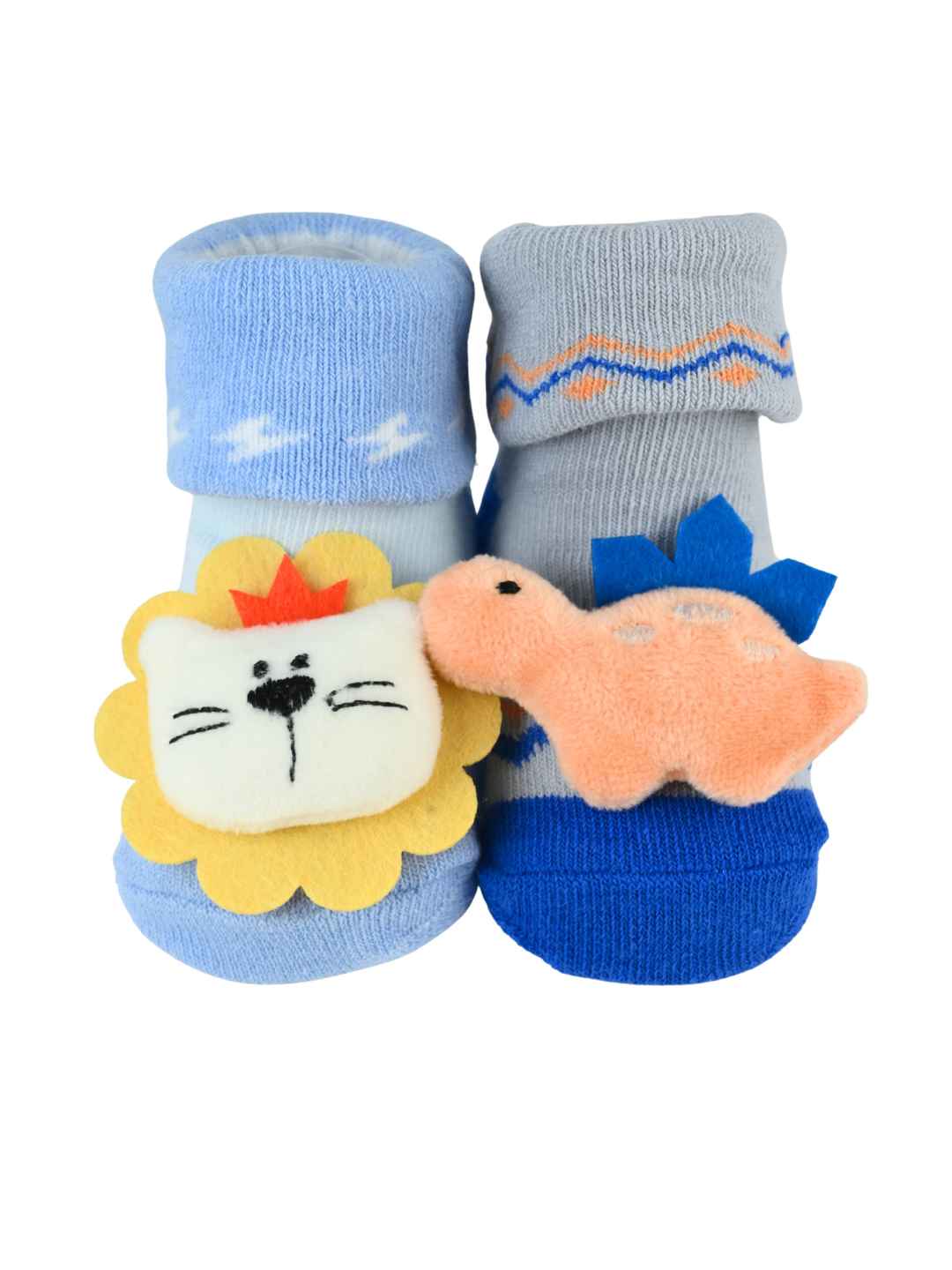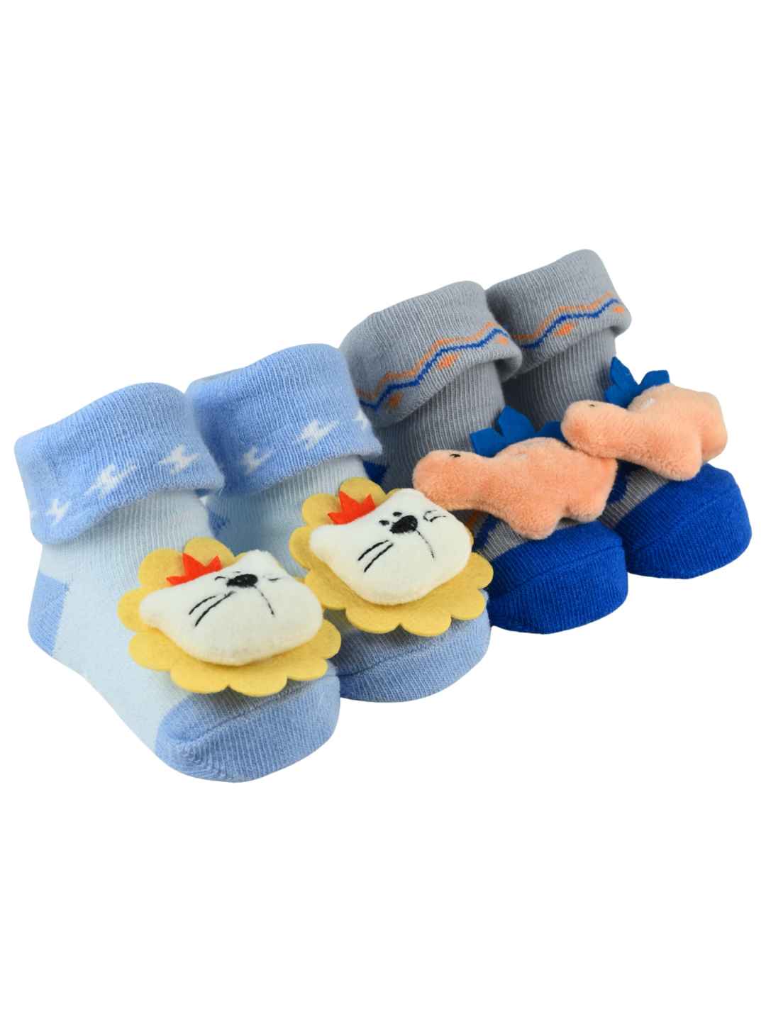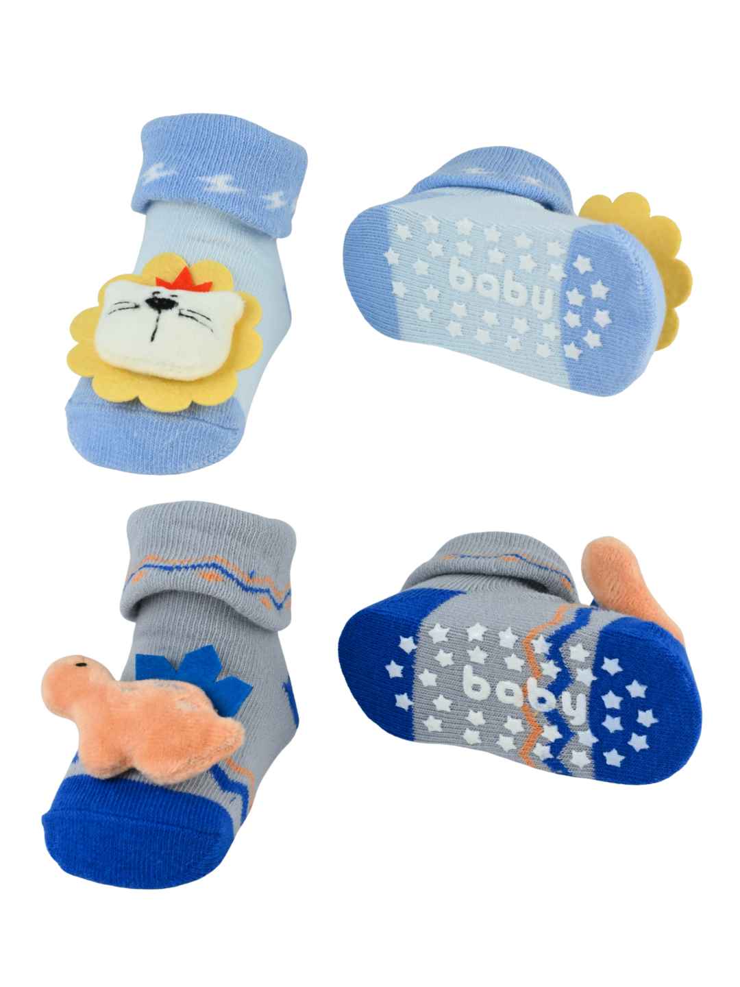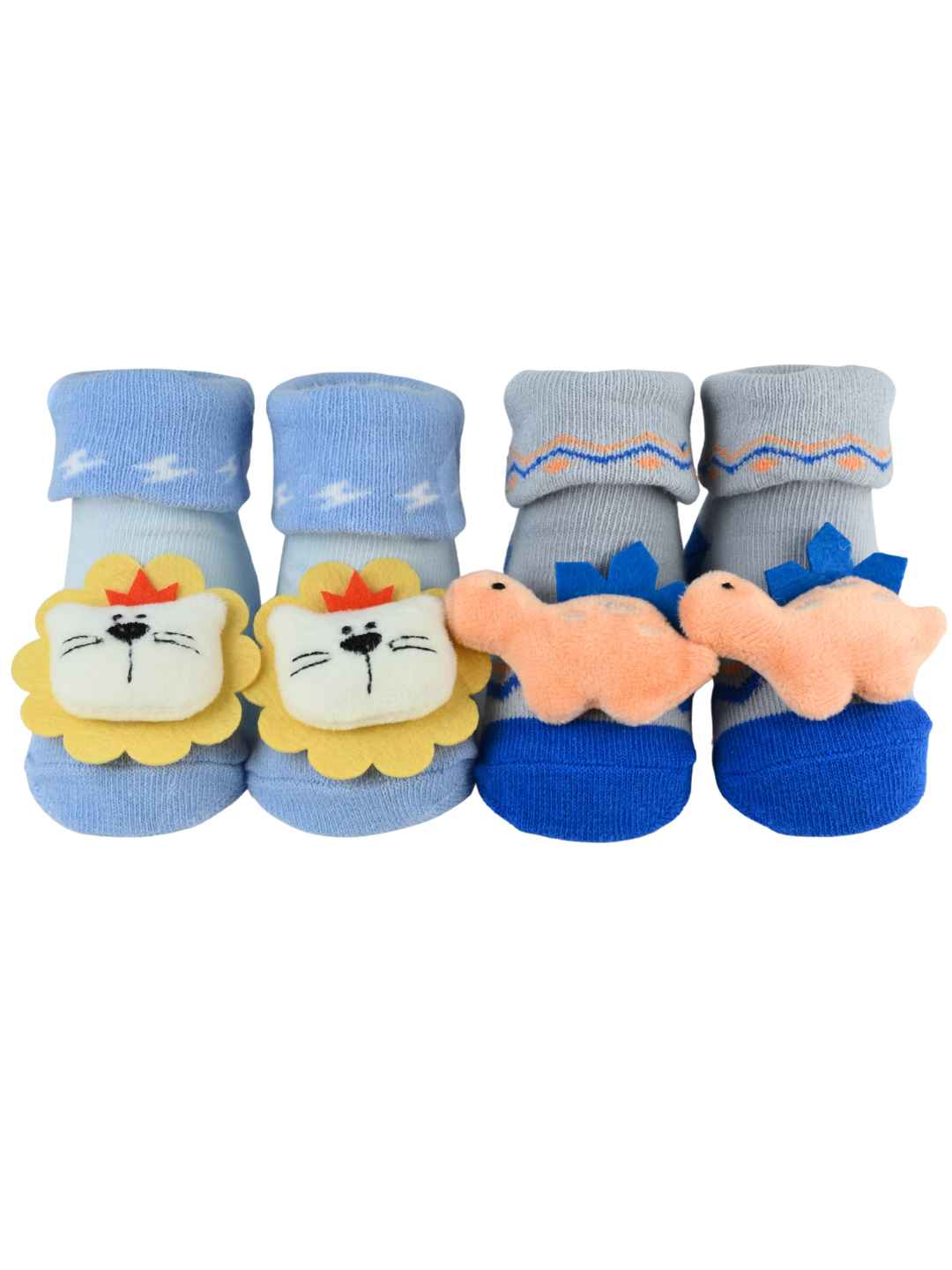 Gentle & Joyful 3D Dino & Lion Design Socks For Boys - Grey & Blue