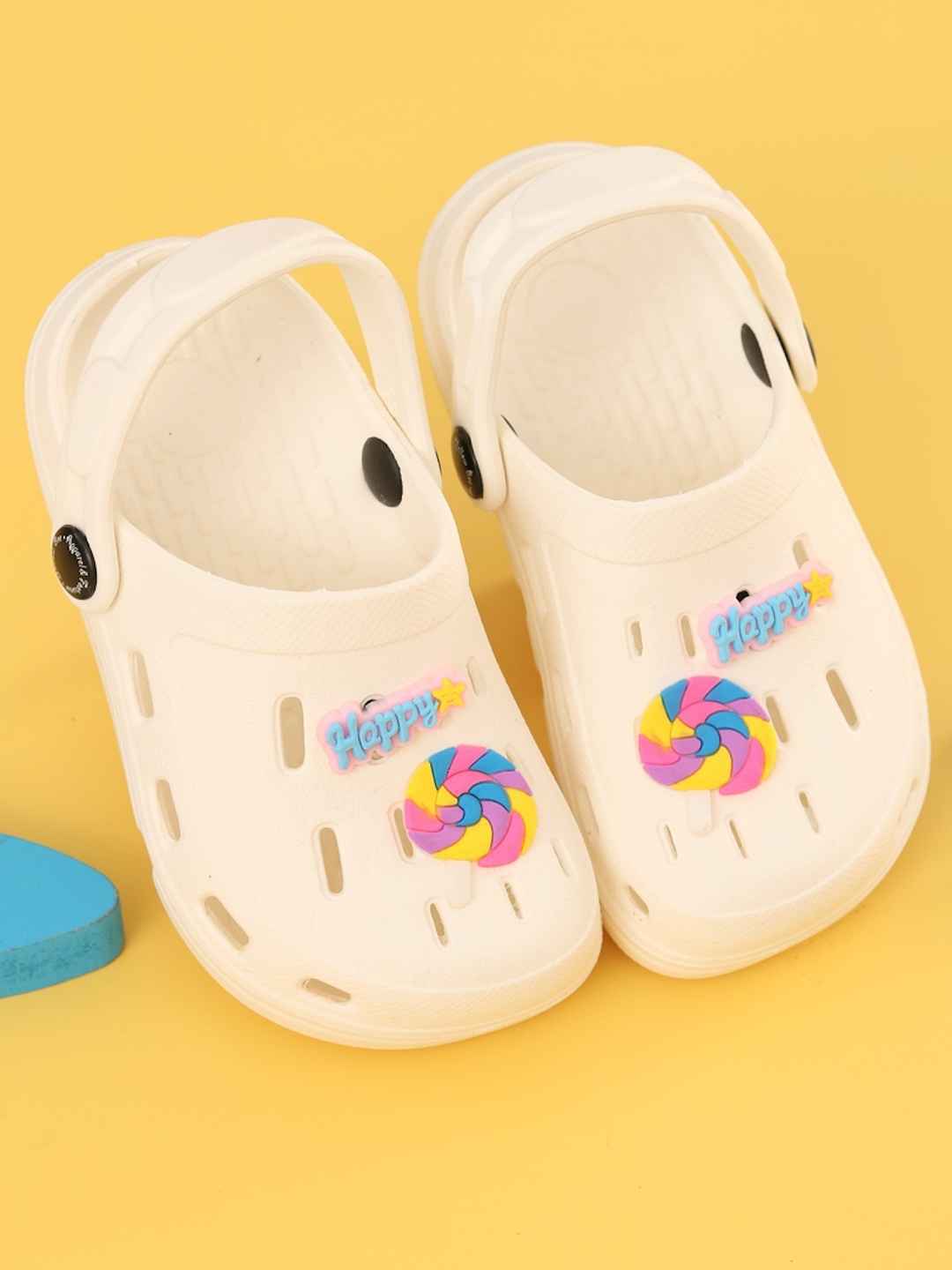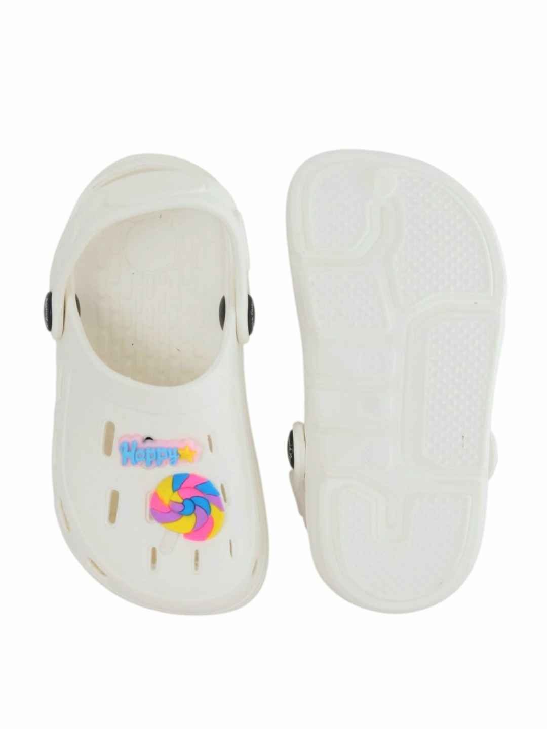 Joyful White Clogs with Colorful Candy & “Happy” Charms for Girls
