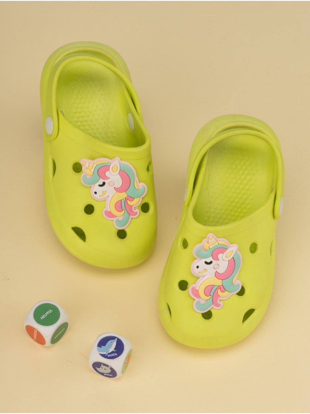 Step into a world of fantasy with the Yellow Bee Dreamy Unicorn Clogs for Girls. Bursting with playful color and adorned with an adorable unicorn charm, these lime green clogs are a must-have for little girls who love to imagine, explore, and shine. Crafted for comfort and built for every tiny adventure, they blend whimsical flair with practical wearability.