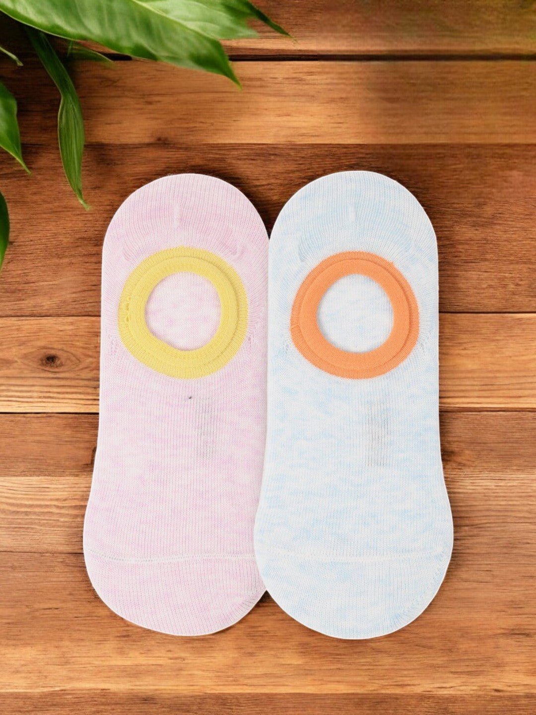 Pastel No-Show Socks with Colorful Contrast Bands - 2 Pack