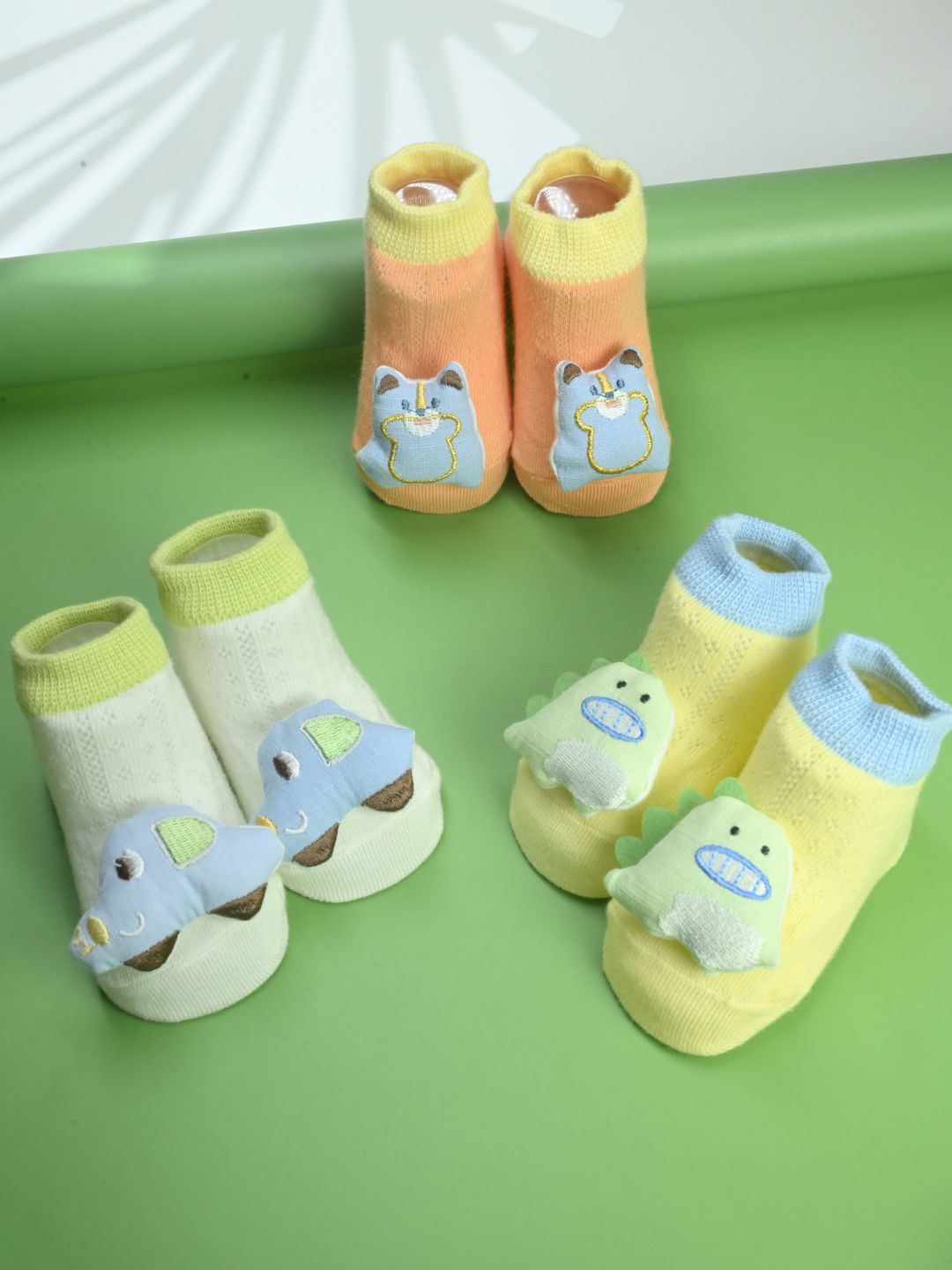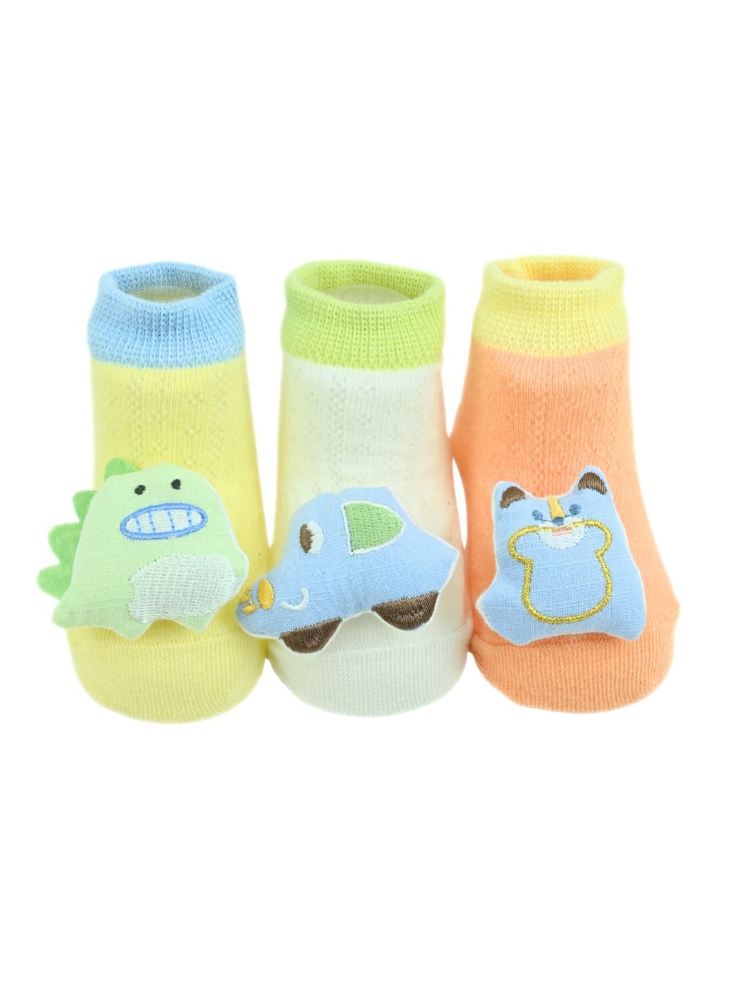 Playful 3D Dino, Car & Bear Design Baby Socks for Boys - Multi
