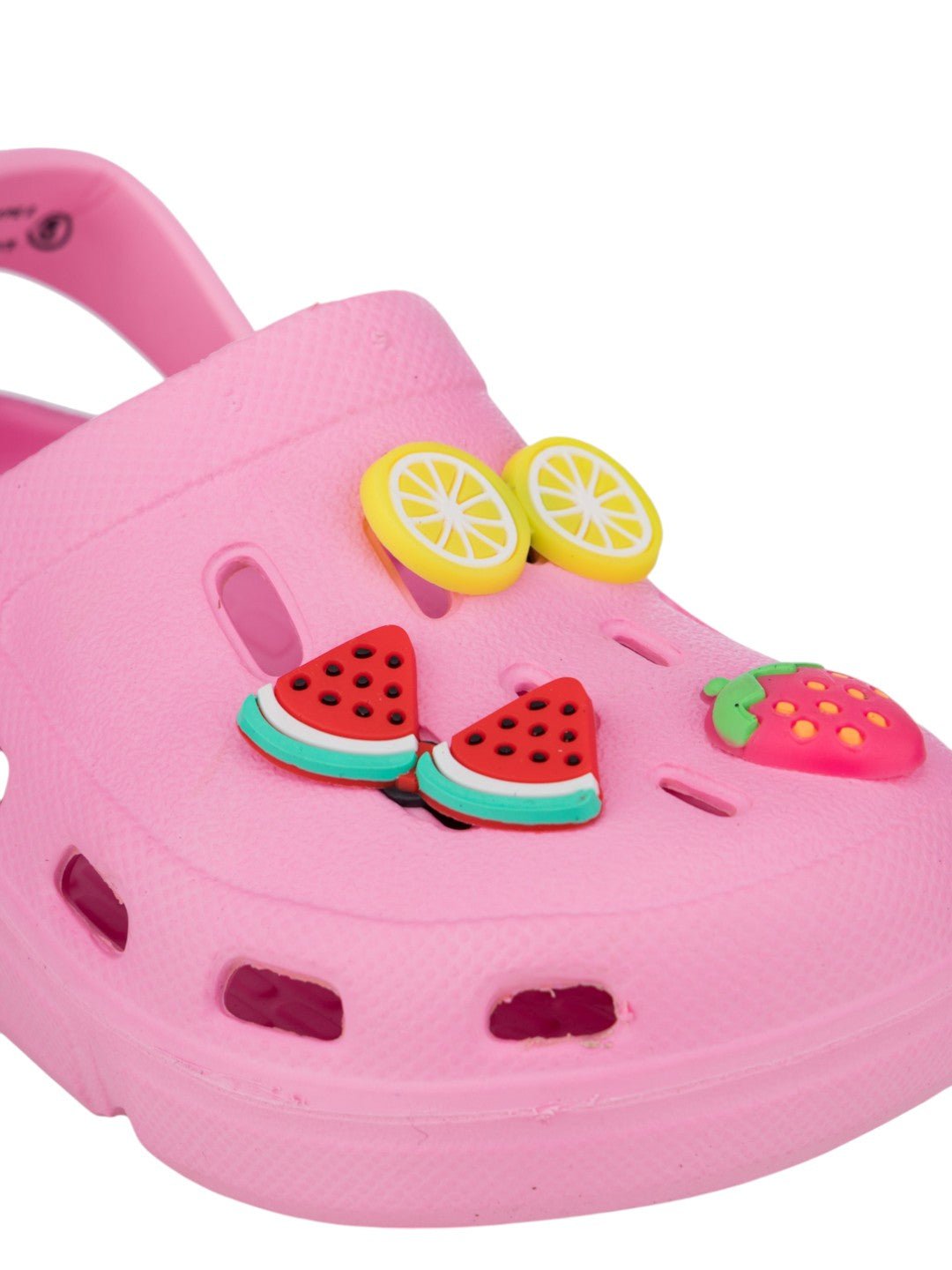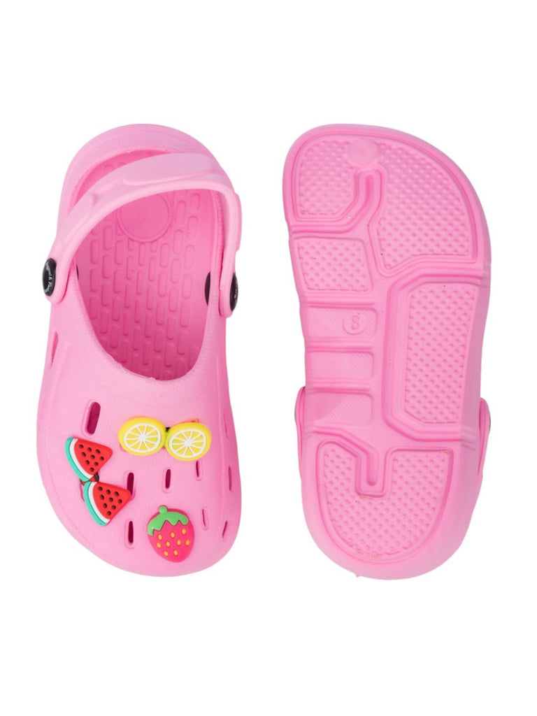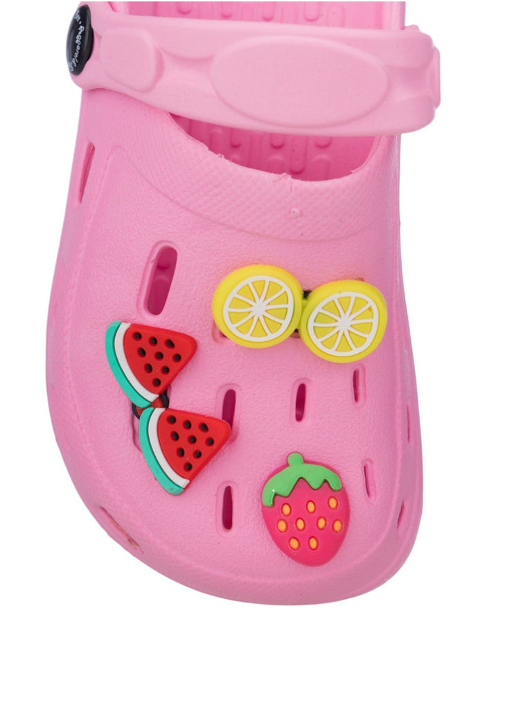 Playful Girl's Clogs with Strawberry, Watermelon & Lemon Accents- Pink