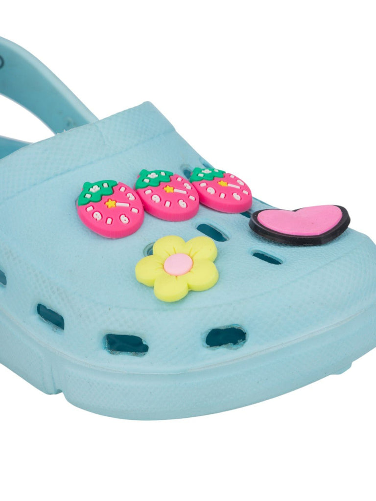 Pretty & Playful Clogs with 3D Strawberry, Flower & Heart Accents for Girls- Blue