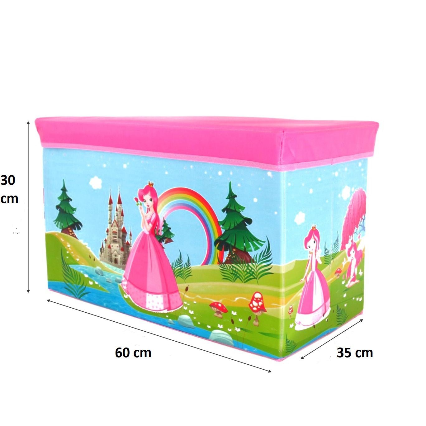 Let your little one reign over a tidy kingdom with the Yellow Bee Princess Multi-Functional Folding Storage Box Organizer Cum Stool. Adorned with storybook castles and a pastel palette, this organizer is designed to capture the hearts of aspiring royals. Functional and enchanting, it combines the necessity of neatness with the magic of fairytales, making it a majestic addition to any room.