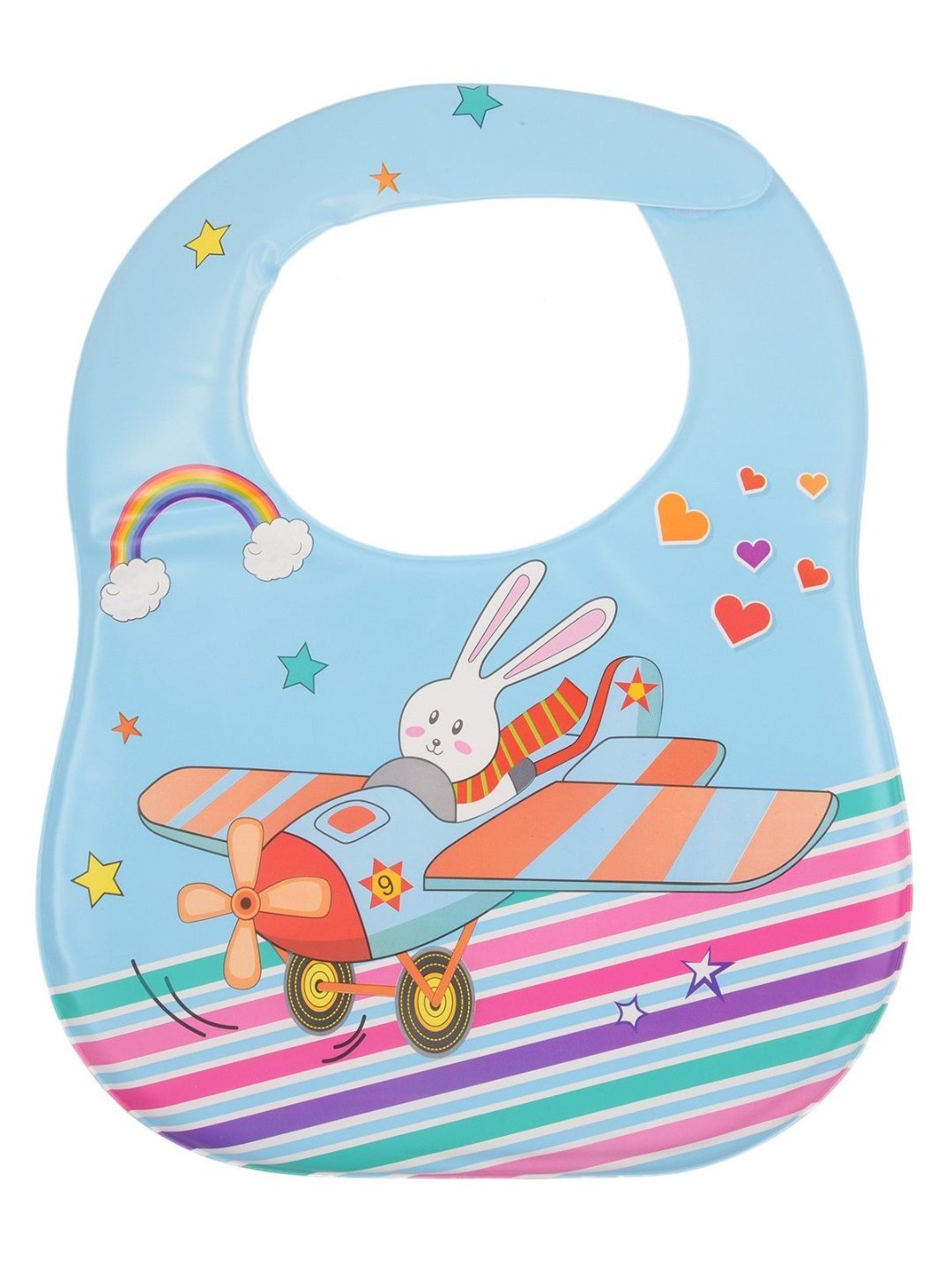 Rainbow Bunny Blue Waterproof Bib with Crumb Catcher