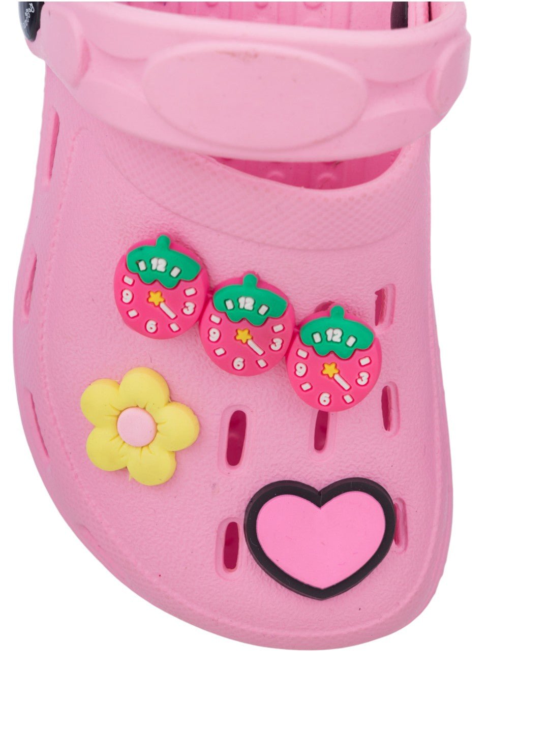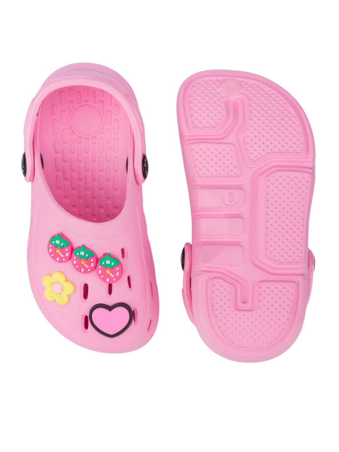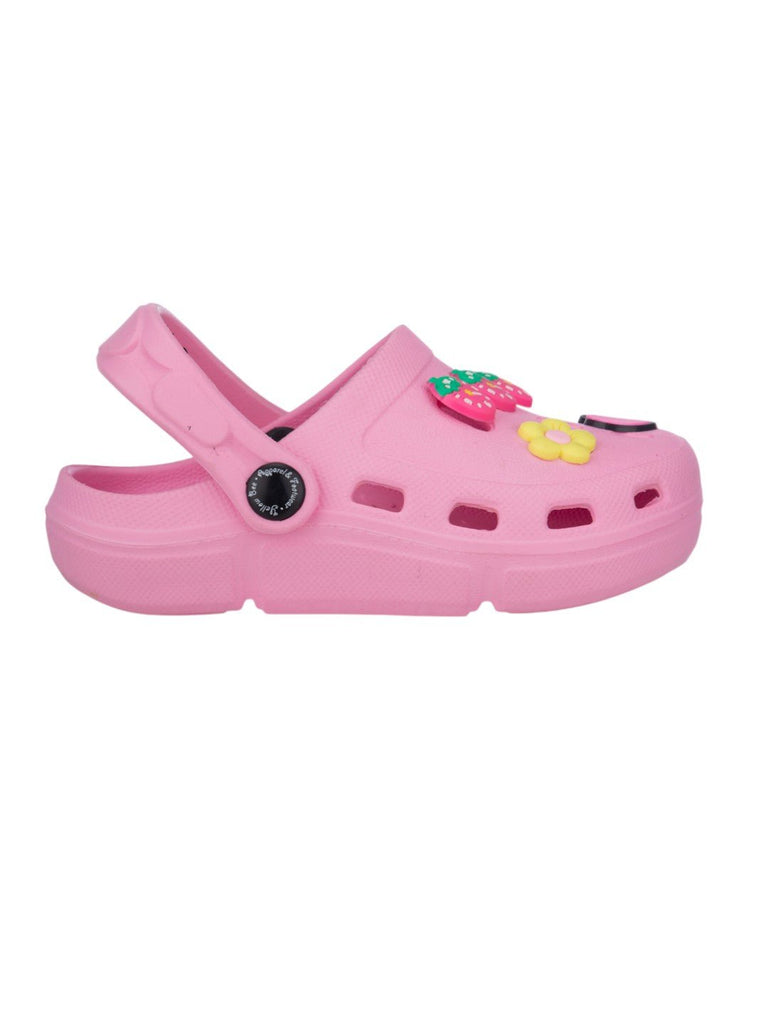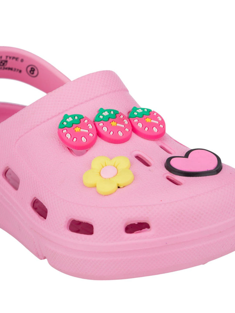 Soft & Stylish Clogs with 3D Strawberry, Flower & Heart Accents for Girls- Pink