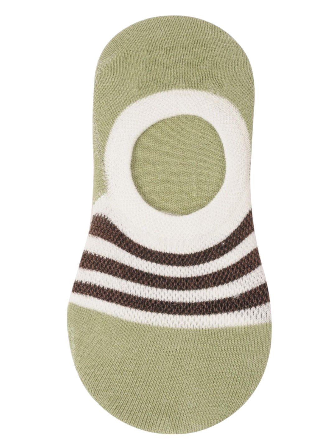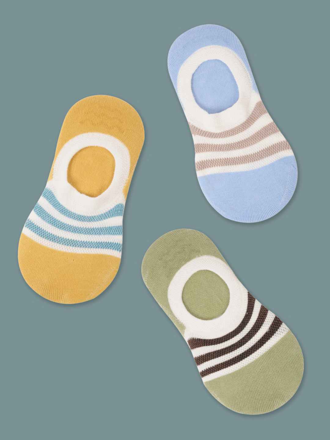 Striped No-Show Socks Trio – Green, Mustard, and Blue
