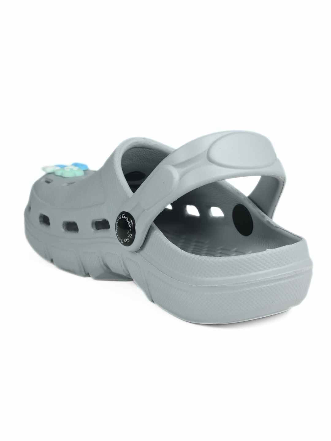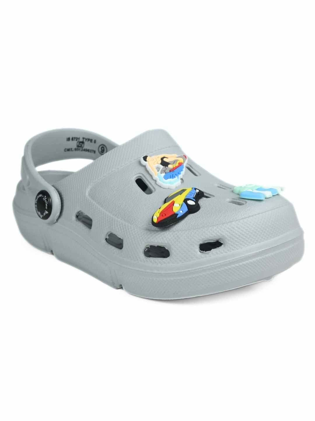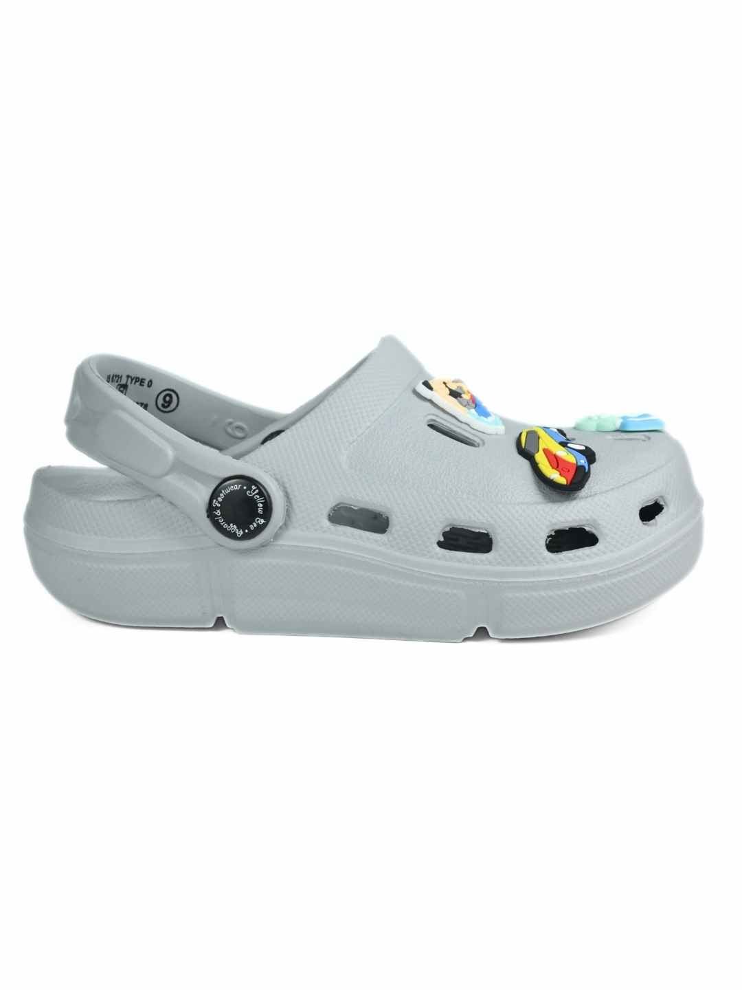 Stylish Grey Clogs with Surfing, Racing Car & 'Rich' Charm for Boys