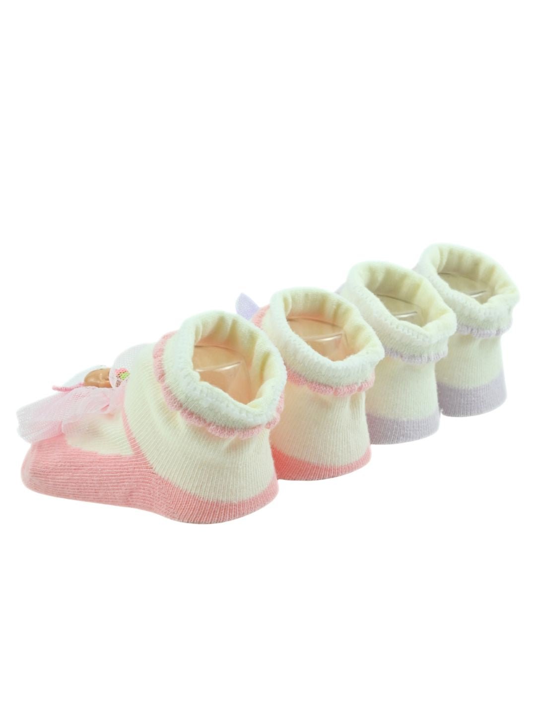 Sweet Baby Cotton Socks with Bear Applique & Tulle Design for Girls – Pink & Purple