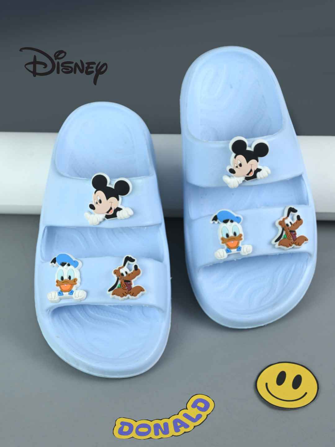 Yellow Bee Boys’ Disney Mickey, Donald & Pluto Charms Slides- Blue