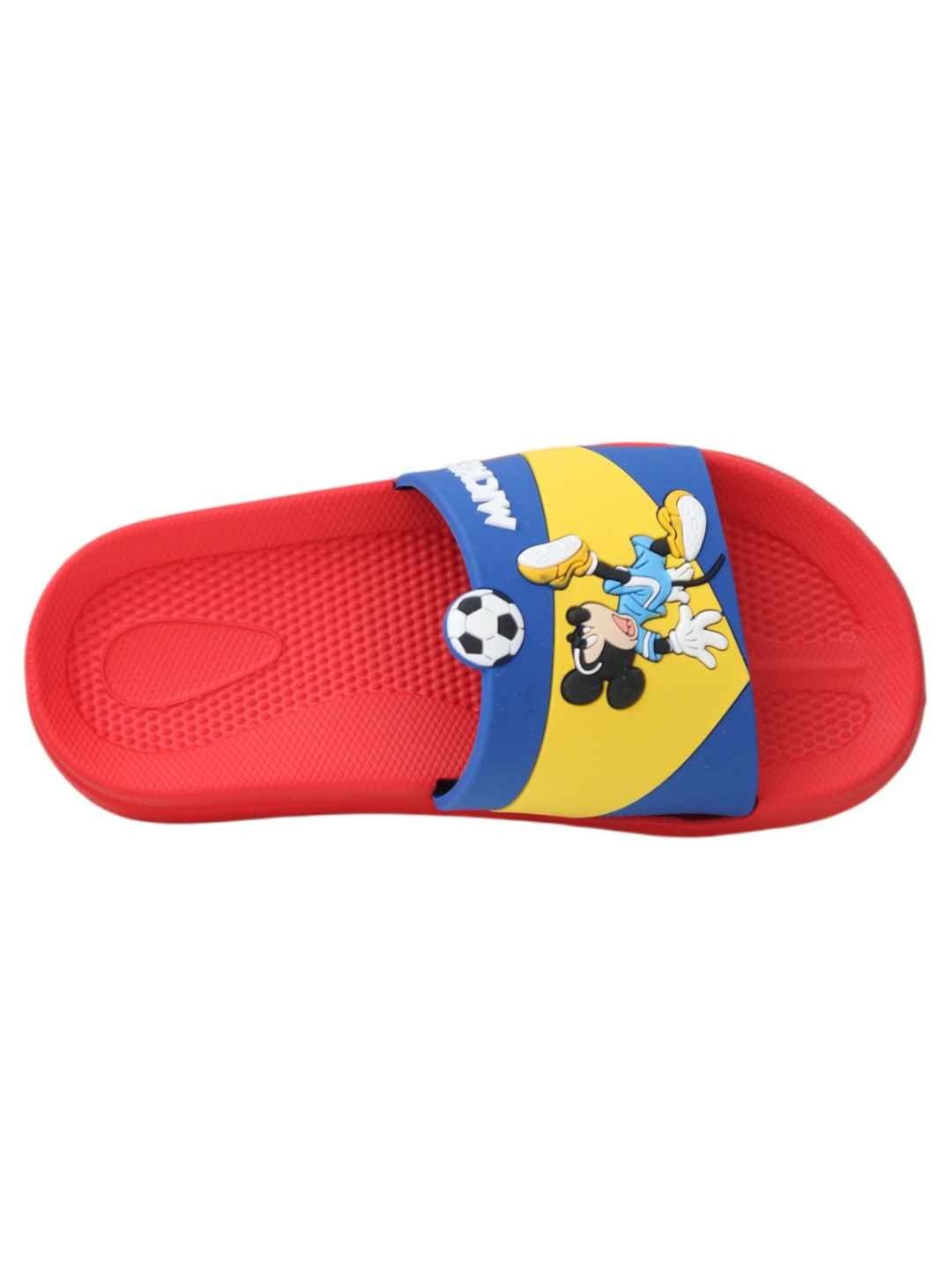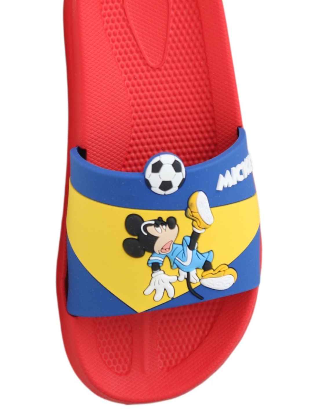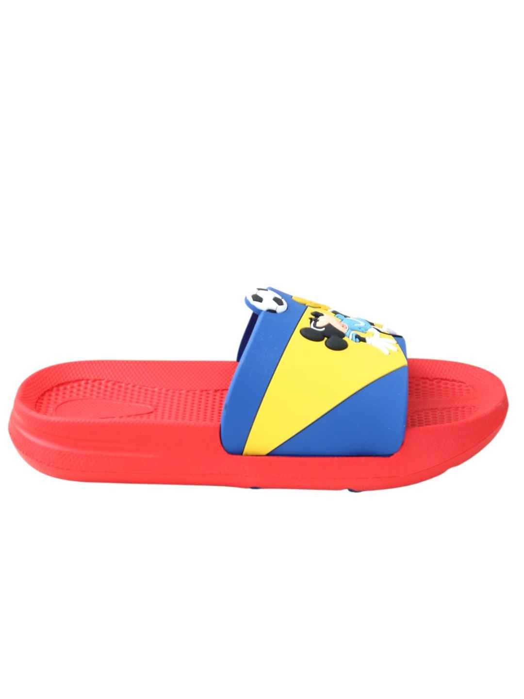 Add a bold sporty twist to your child’s everyday look with the Yellow Bee Boys Disney Mickey Mouse Soccer Design Slides in Red. Featuring a playful Mickey Mouse football action graphic with a soccer ball detail, these slides are designed to capture attention instantly. The vibrant red base combined with blue and yellow closure accents creates a striking, energetic style, while the lightweight EVA construction ensures all-day comfort for active boys.