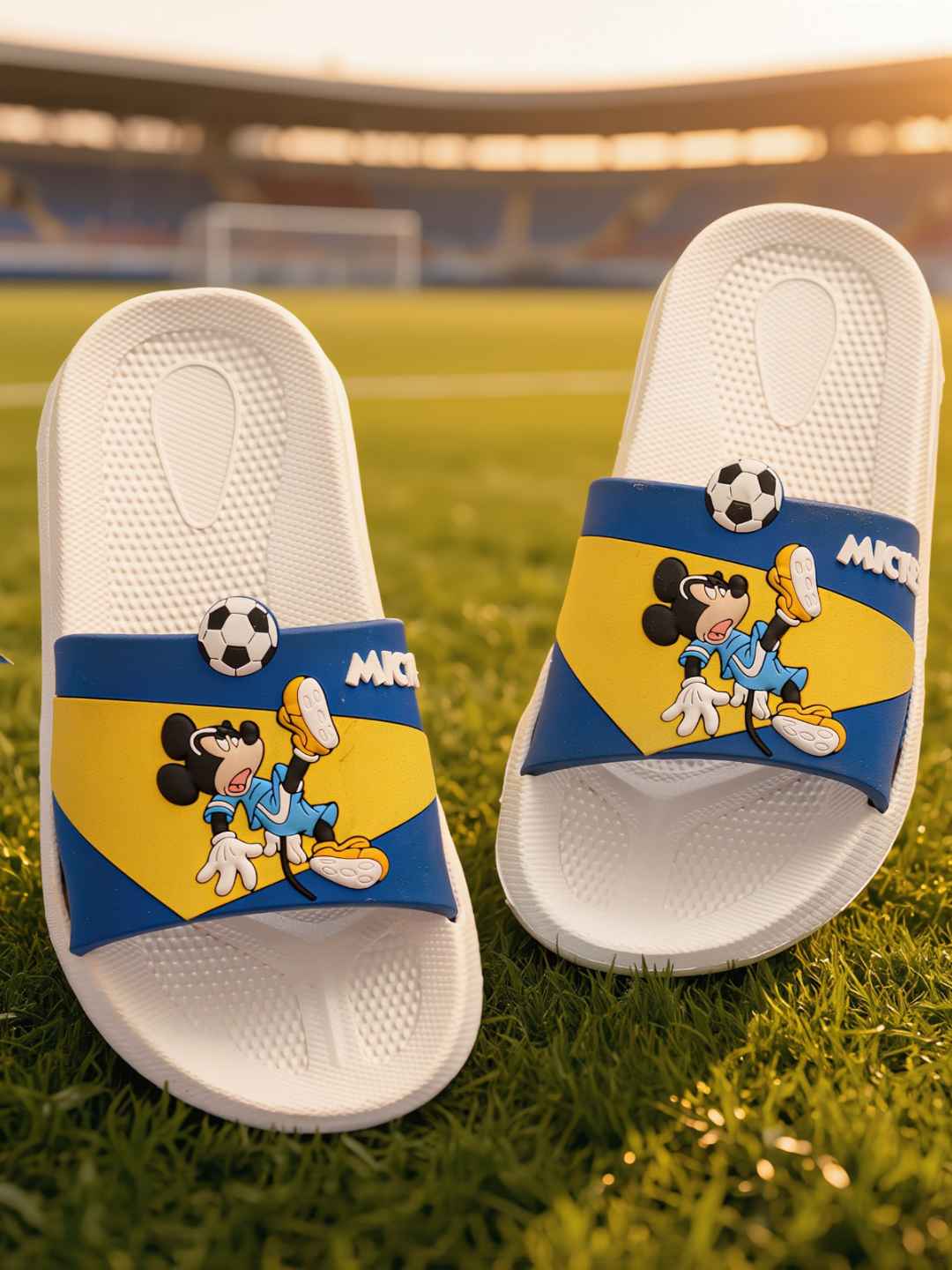 These slides are perfect for young boys who love Mickey Mouse, sports themes, and comfortable everyday footwear. Ideal for casual wear, indoor use, outdoor play, vacations, or quick outings. Pair them with shorts, joggers, or summer outfits for an easy, stylish look—just slip them on and let your child enjoy all-day comfort with a fun sporty twist.