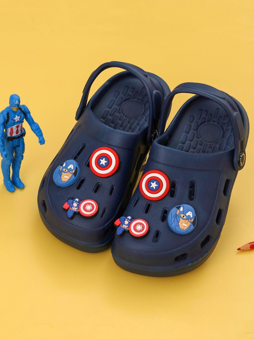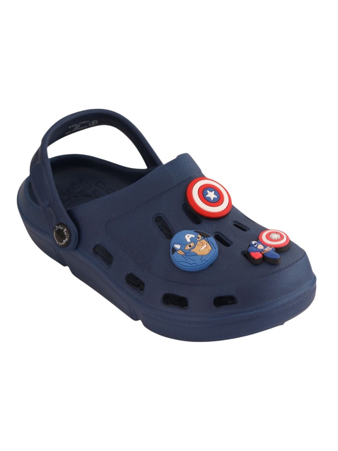 Yellow Bee Boys’ Marvel Clogs with Captain America Shield & Star Emblem Charms – Navy Blue