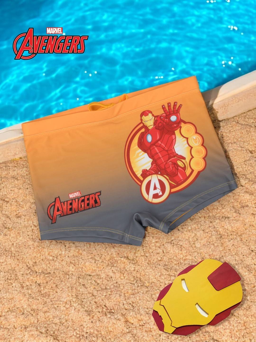Let your little hero make a splash in style with the Yellow Bee Boys’ Marvel Iron Man Swim Trunks. These trunks are a visual standout with an orange-to-grey gradient backdrop, setting the perfect stage for the commanding Iron Man power pose. Designed for comfort and built for action, they blend superhero cool with summer-ready practicality—ideal for beach days, pool parties, and water adventures!