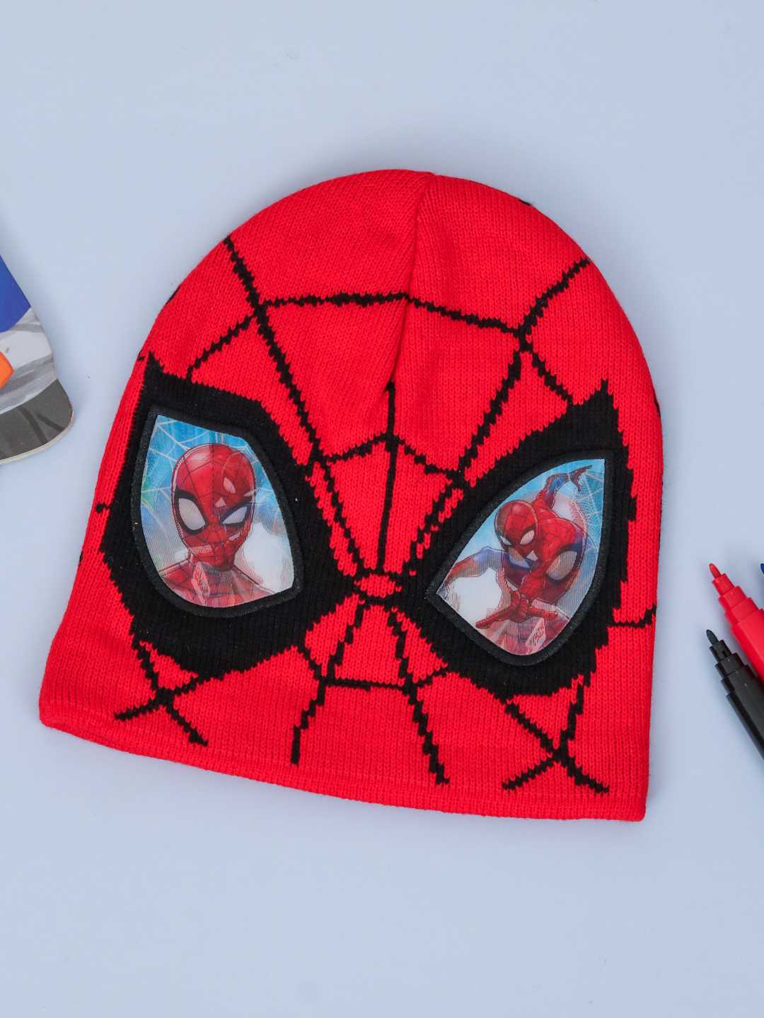 Yellow Bee Boy's Marvel Spider Man 3D Motion Effect Patch Winter Hat- Red & Black
