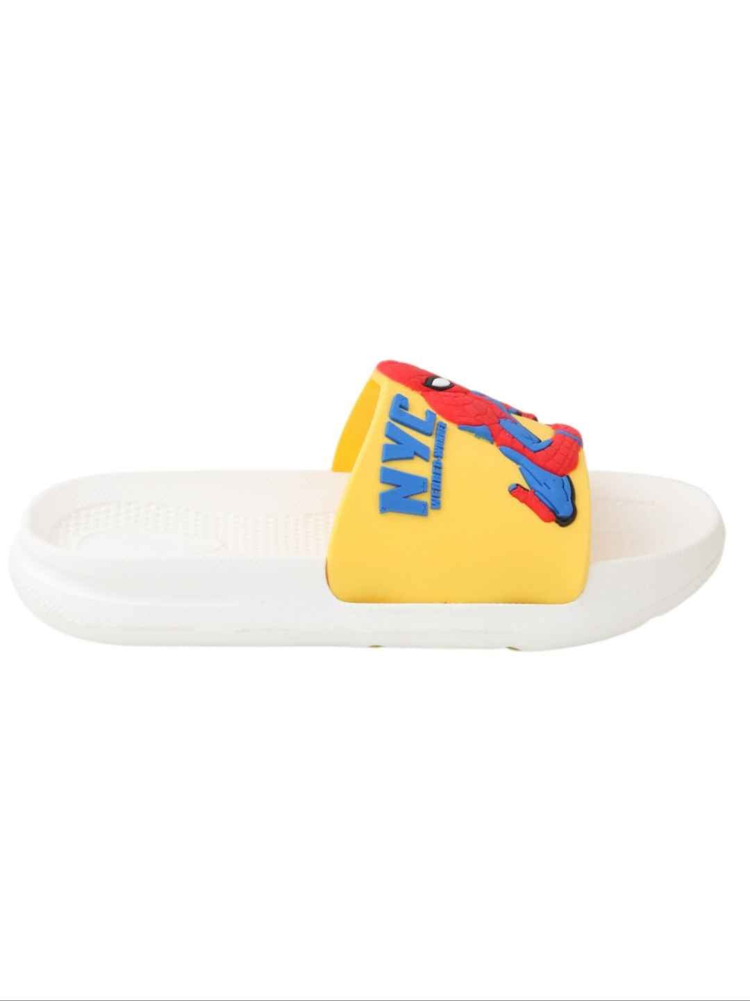 Let your little superhero step out in bold style with the Yellow Bee Boys Marvel Spider-Man Design Slides with NYC Graphic in White. Featuring a dynamic Spider-Man character in action along with a striking NYC graphic, these slides bring energy and attitude to everyday footwear. Designed with a clean white base and vibrant closure detailing, they are made from lightweight EVA material to deliver all-day comfort, making them perfect for active boys who love adventure.