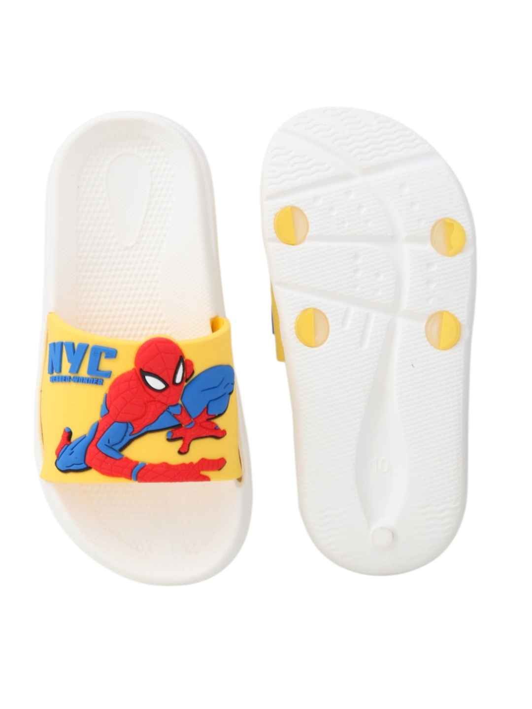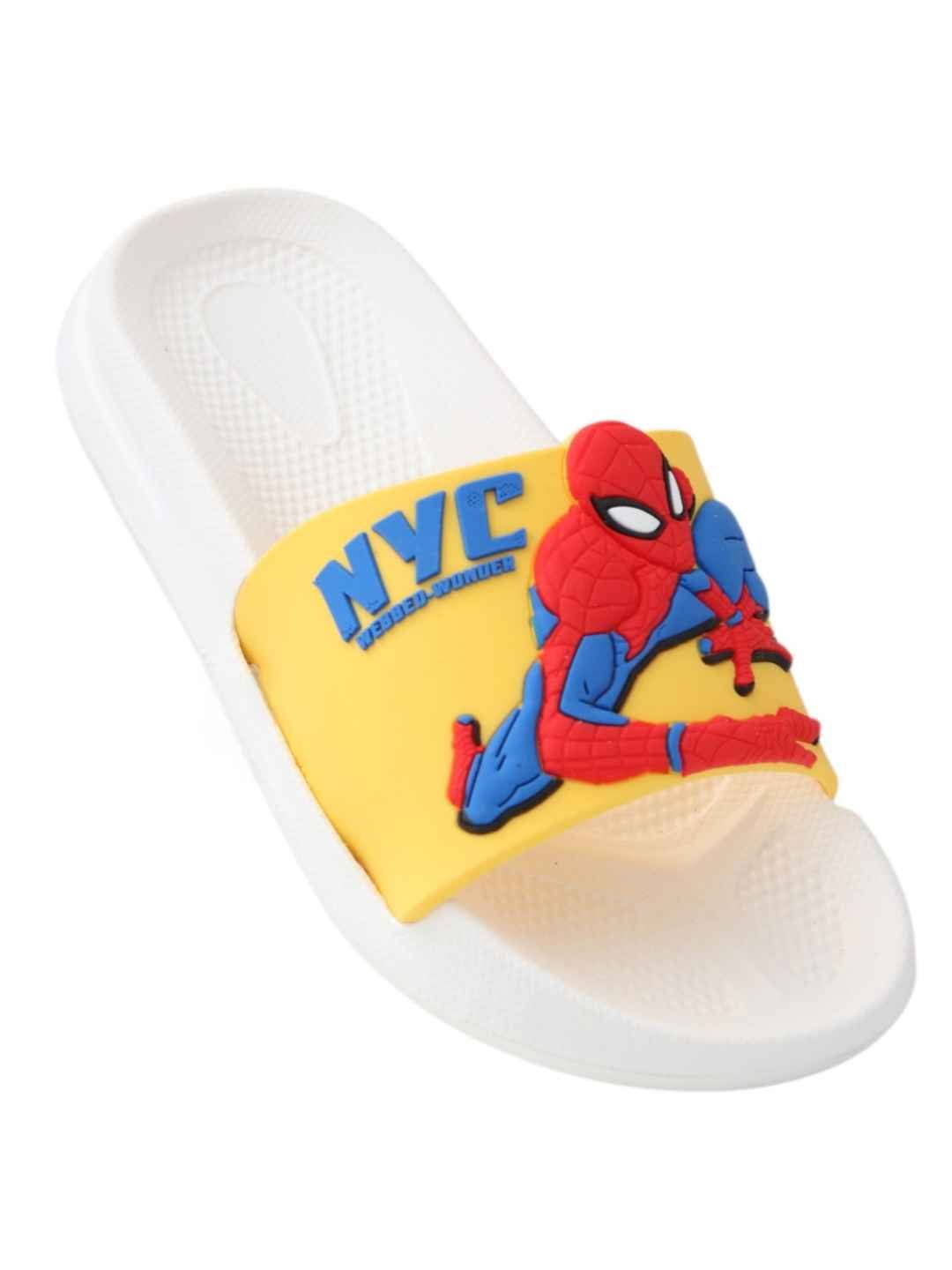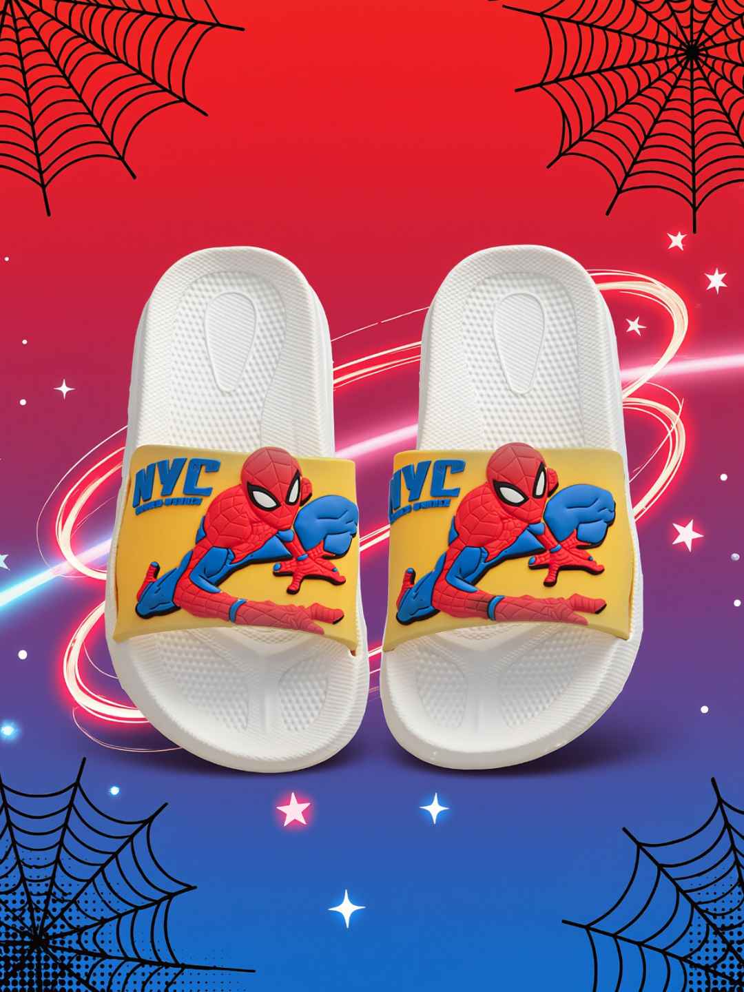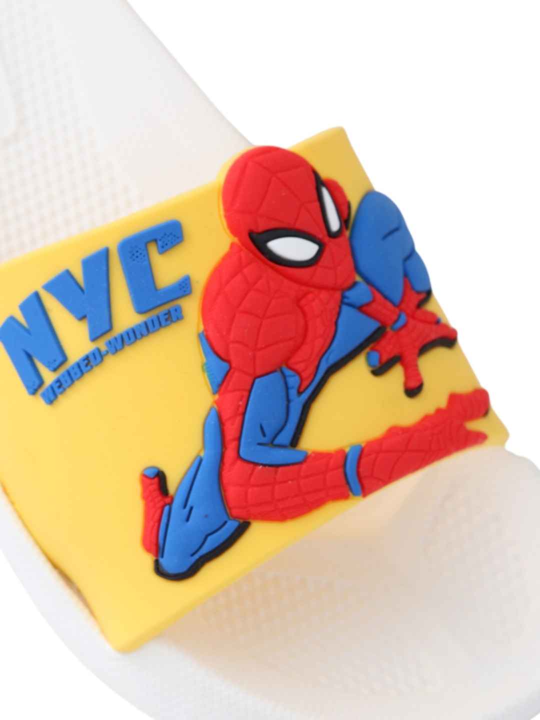 Yellow Bee Boys Marvel Spider Man Design Slides With Bold NYC Graphic - White