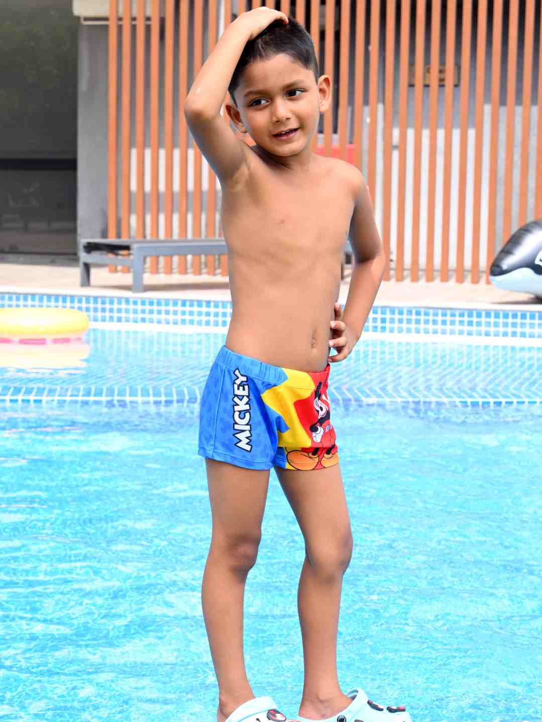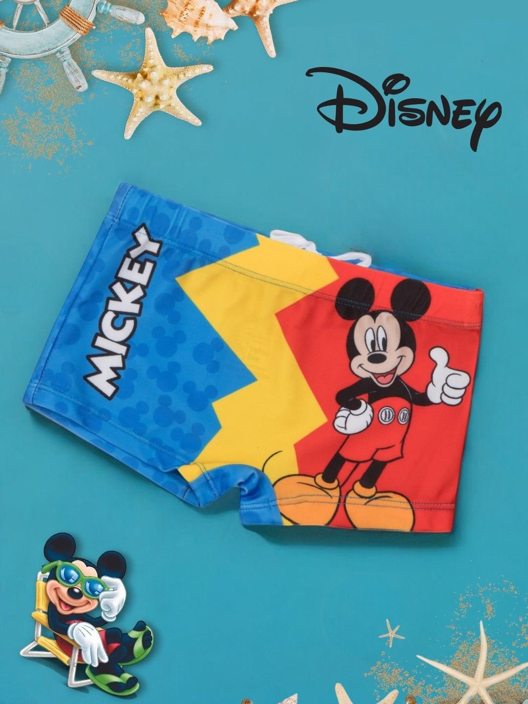 • Iconic Mickey Mouse Front Print:- Features Mickey in a fun, energetic pose with bold red and yellow graphics for a standout swim look.