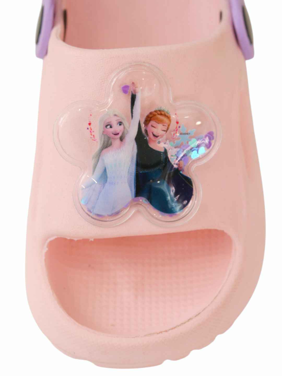 Add a sweet pop of color to her Frozen look with Yellow Bee’s Disney Frozen sandals in pink. Featuring adorable Elsa & Anna floral sequin charms and a secure purple slingback closure, these lightweight EVA sandals are made for comfy everyday wear—perfect for playtime sparkle, casual outings, and holiday adventures.