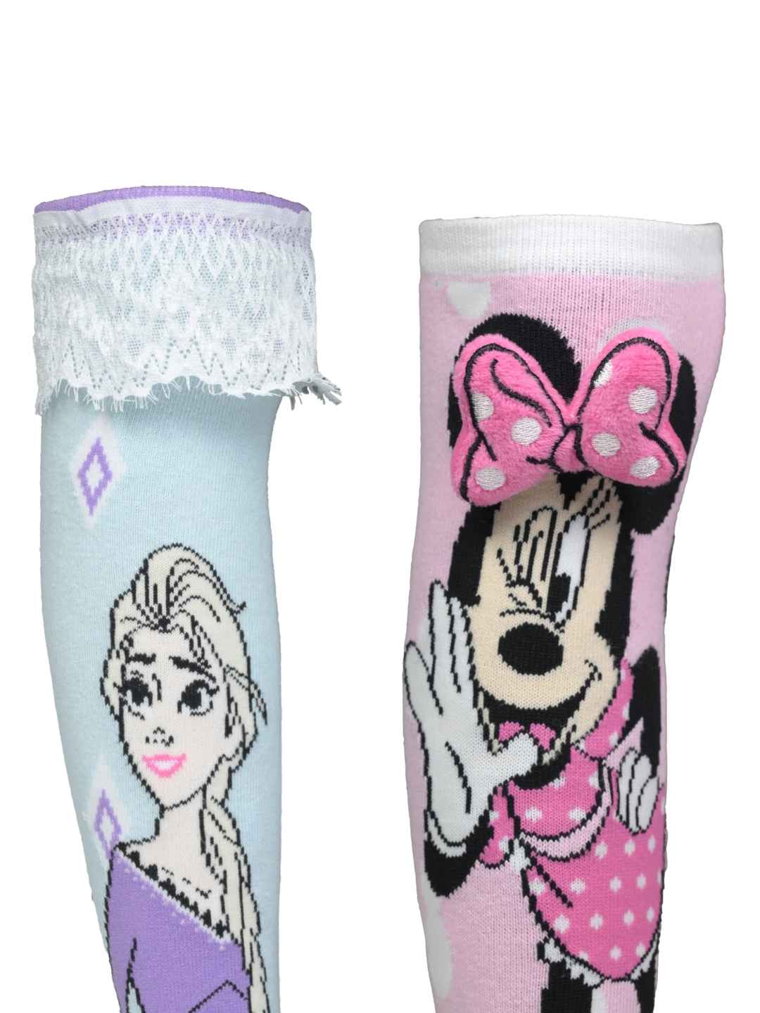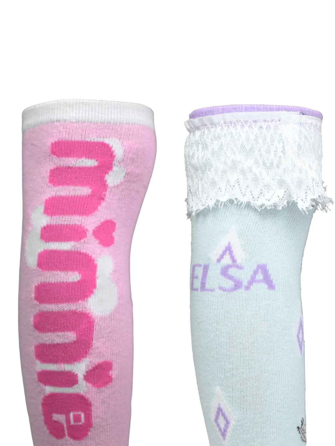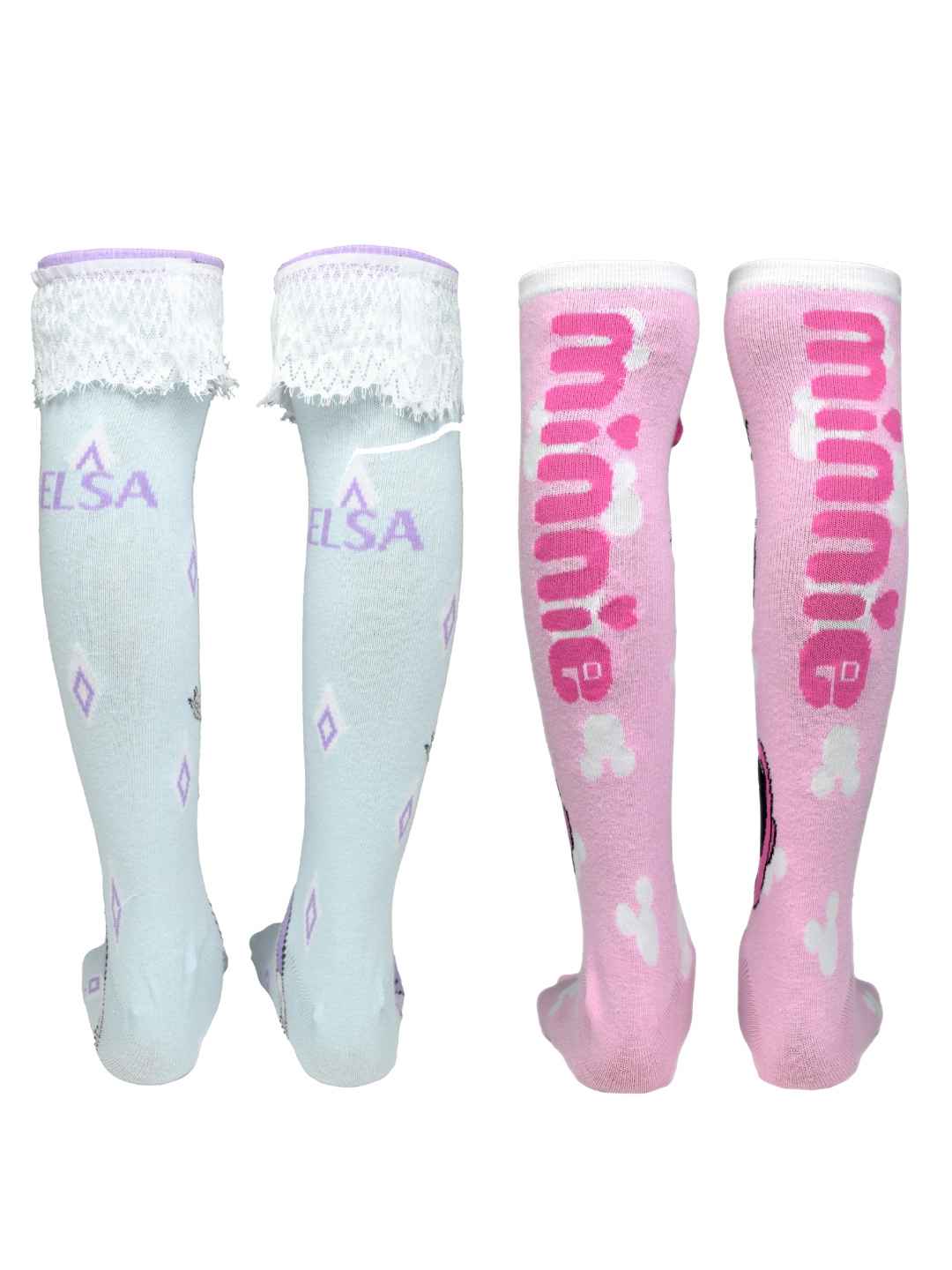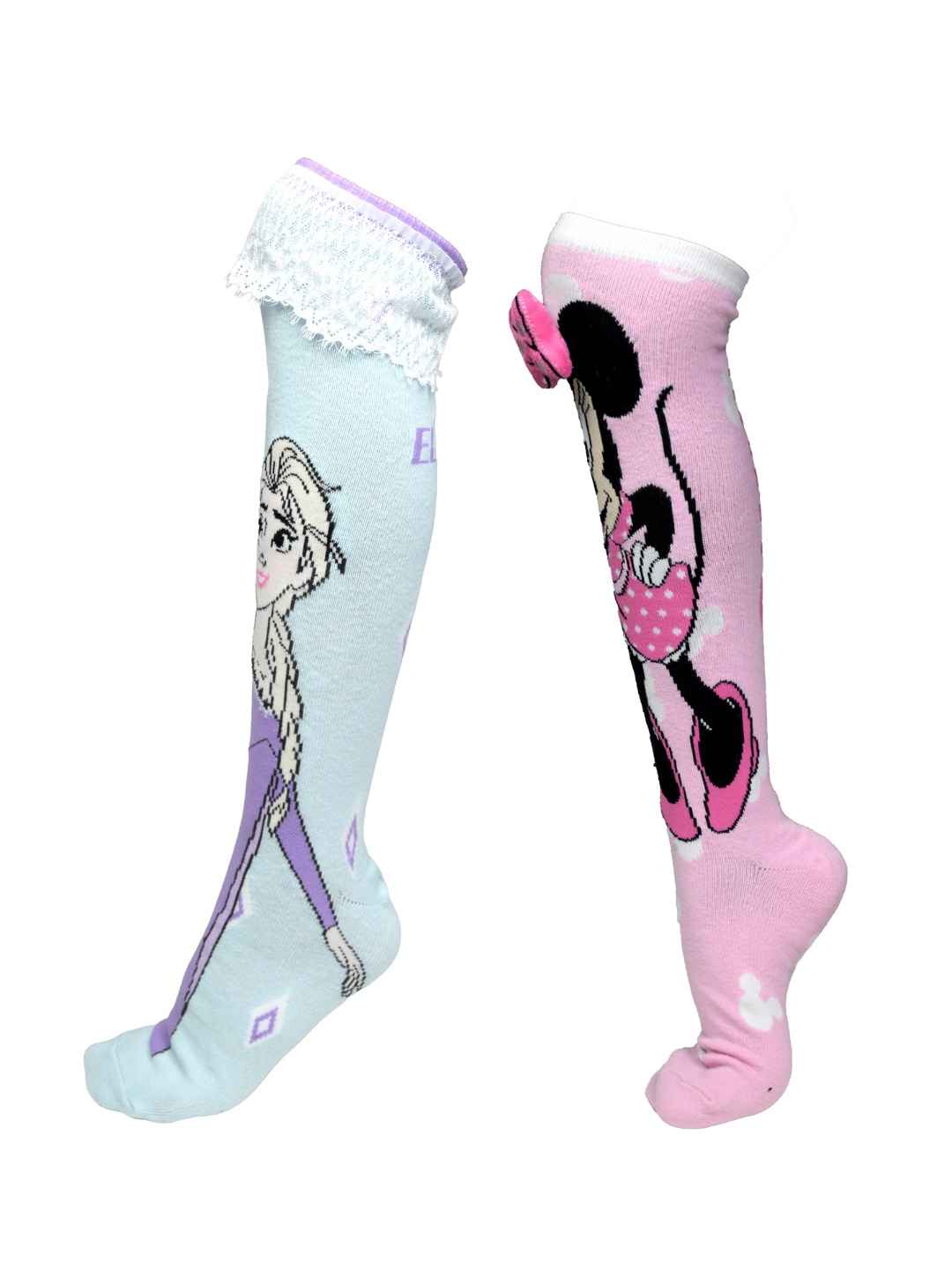 Yellow Bee Girls’ Disney Frozen Elsa & Minnie Design Over the Calf Socks - Light Blue & Pink