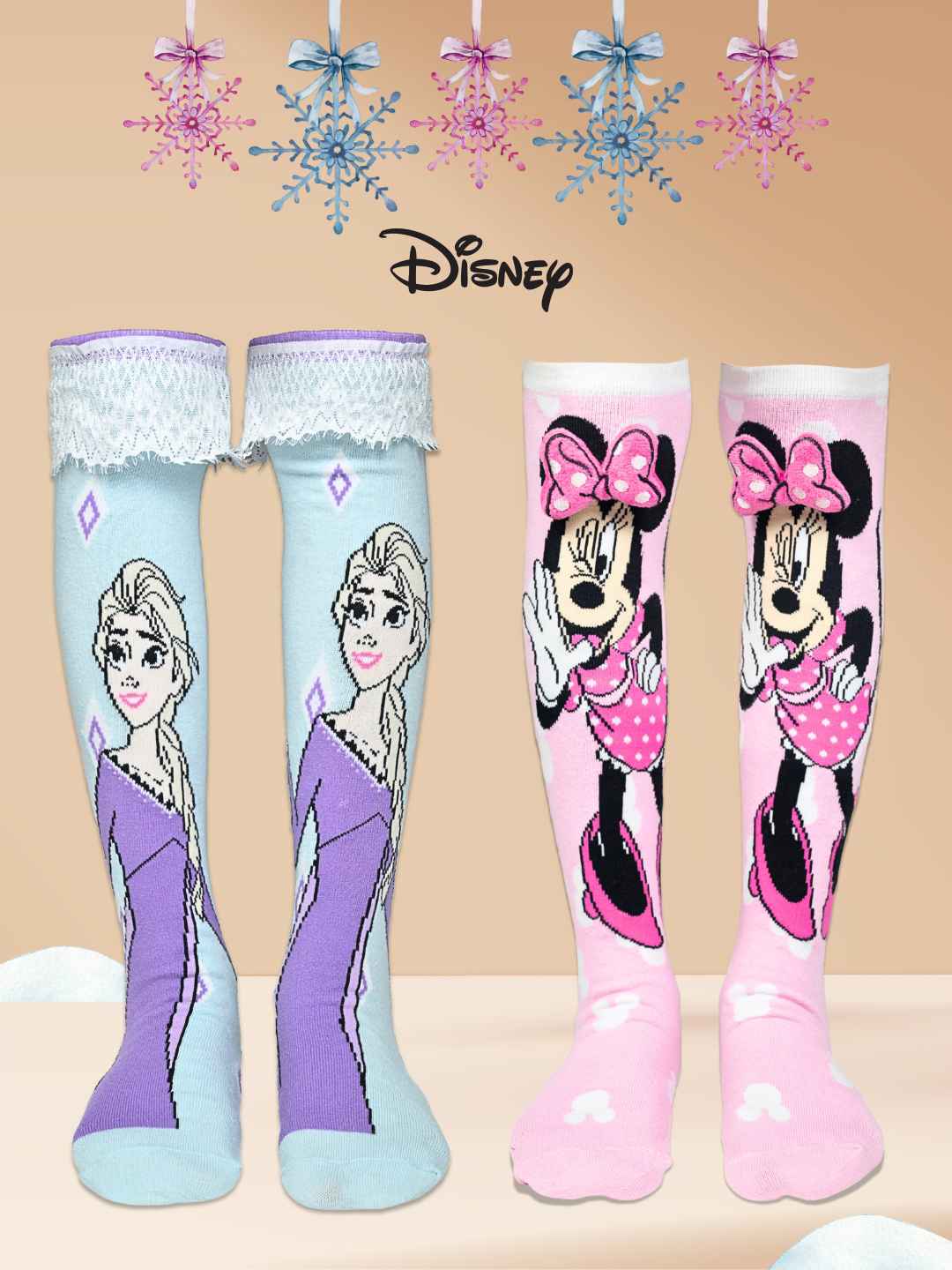 Bring two Disney favorites into her everyday wardrobe with Yellow Bee’s Frozen Elsa & Minnie Mouse knee-length socks in light blue and pink. Crafted from soft, breathable cotton, they keep her comfortable from morning to evening. The adorable Elsa and Minnie designs add instant charm to everyday outfits. Knee-length coverage gives a neat, styled look that works beautifully for school and outings.