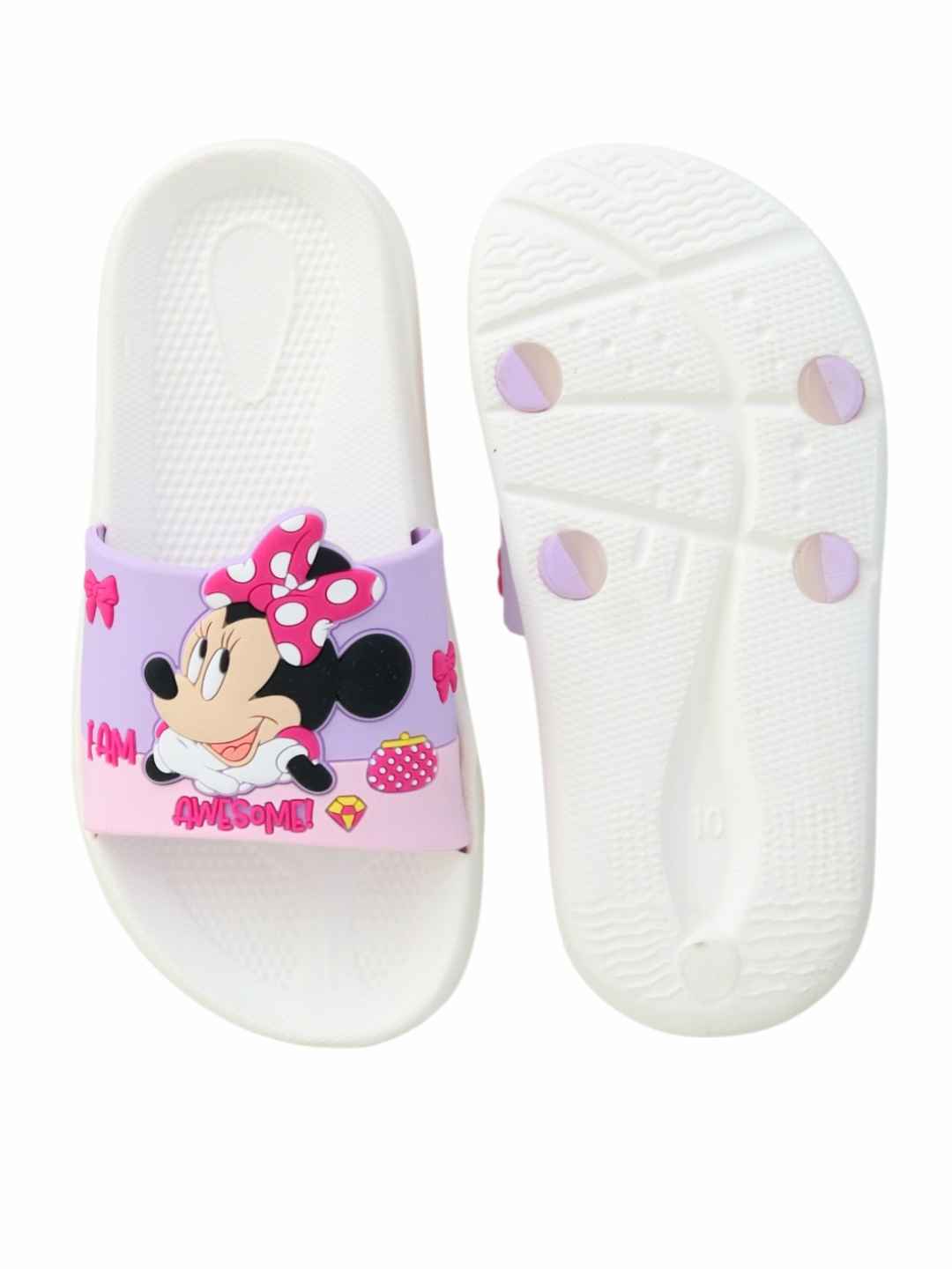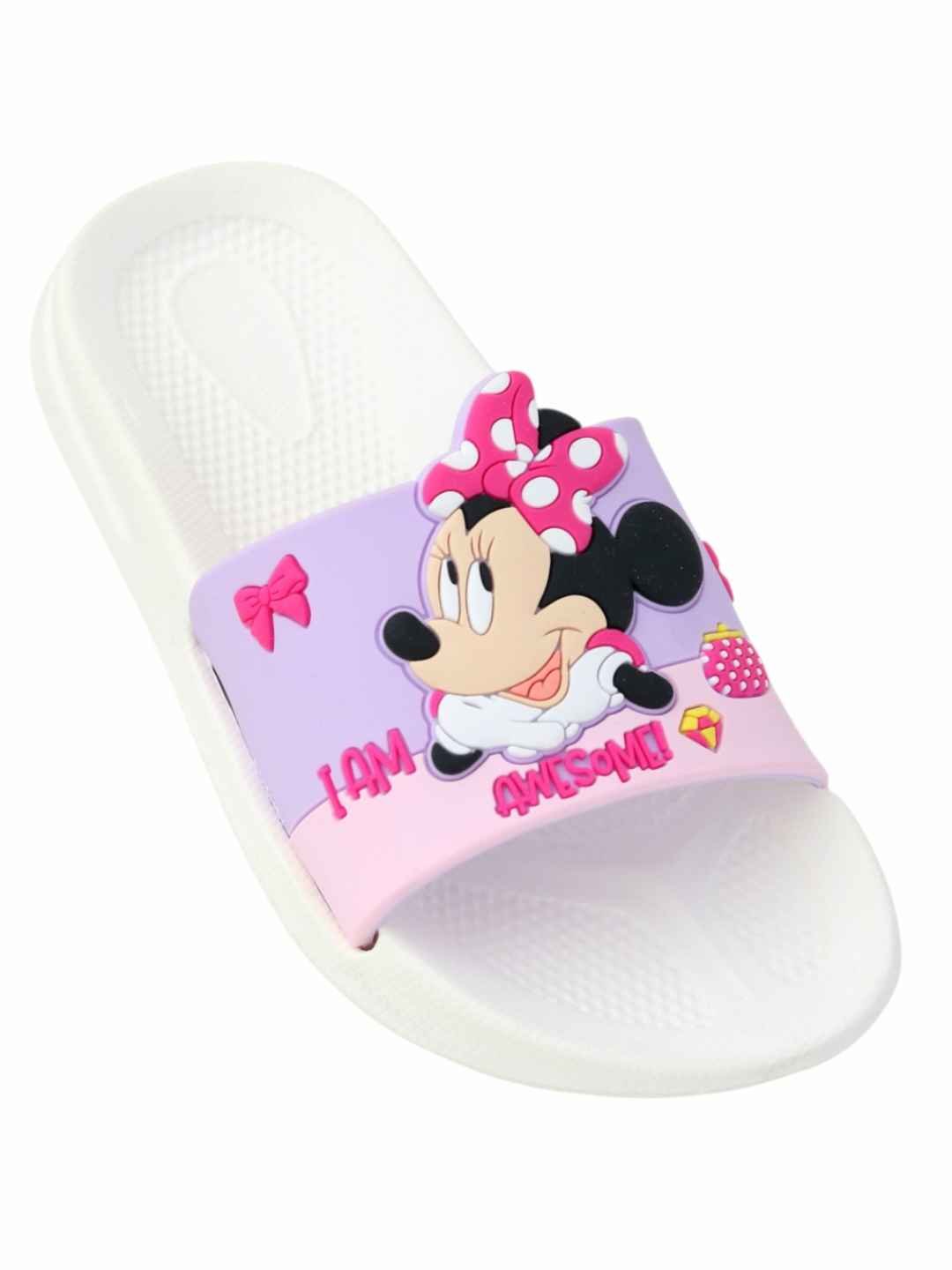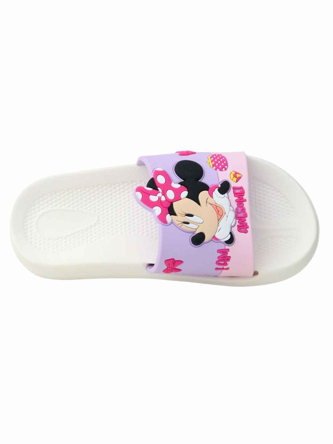 Step into playful comfort with the Yellow Bee Girls Disney Minnie Mouse Slides in White, designed to bring together adorable style and everyday ease. Featuring a charming Minnie Mouse design with vibrant bow detailing, these slides instantly brighten up any outfit while offering a soft, cushioned feel. Crafted from lightweight EVA material, they ensure all-day comfort, making them a perfect choice for active little feet.These slides are ideal for young girls who love Disney-inspired fashion and comfort-driven footwear.