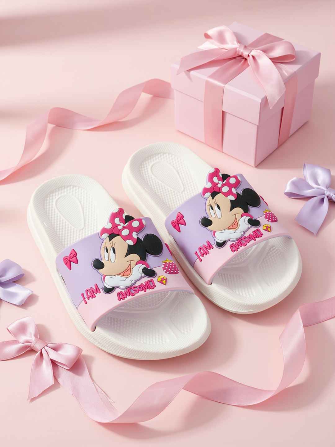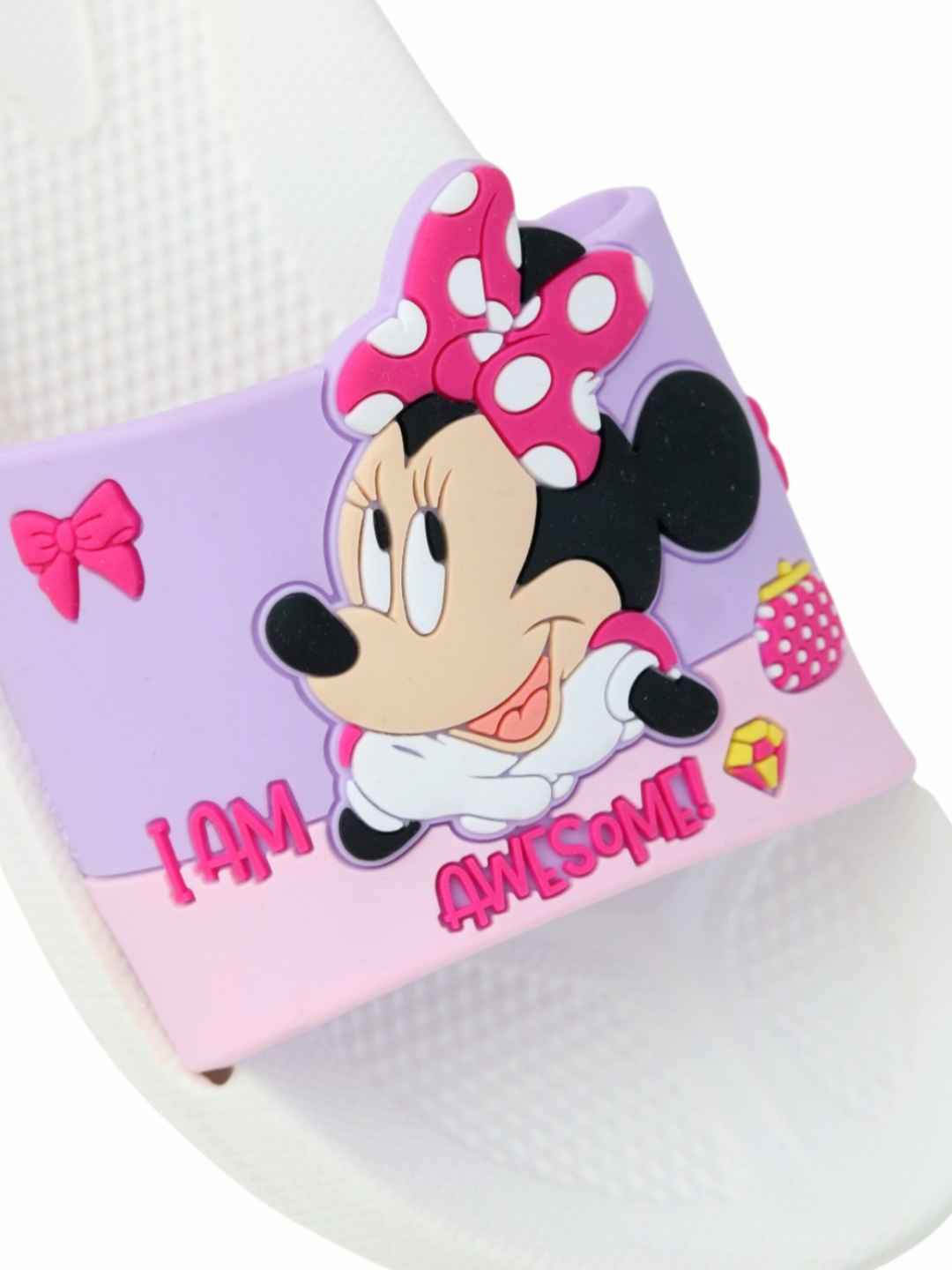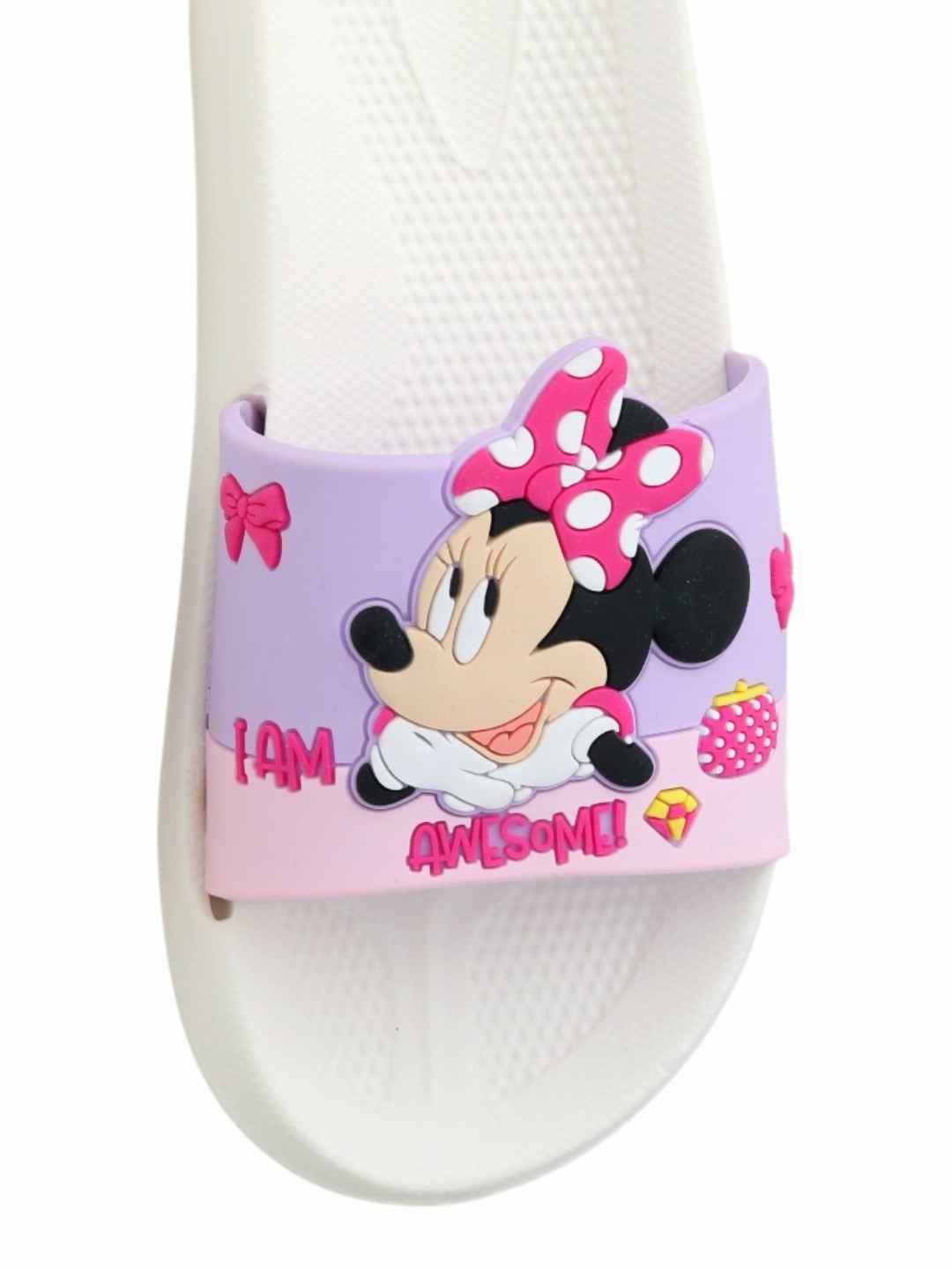 Step into playful comfort with the Yellow Bee Girls Disney Minnie Mouse Slides in White, designed to bring together adorable style and everyday ease. Featuring a charming Minnie Mouse design with vibrant bow detailing, these slides instantly brighten up any outfit while offering a soft, cushioned feel. Crafted from lightweight EVA material, they ensure all-day comfort, making them a perfect choice for active little feet.These slides are ideal for young girls who love Disney-inspired fashion and comfort-driven footwear.