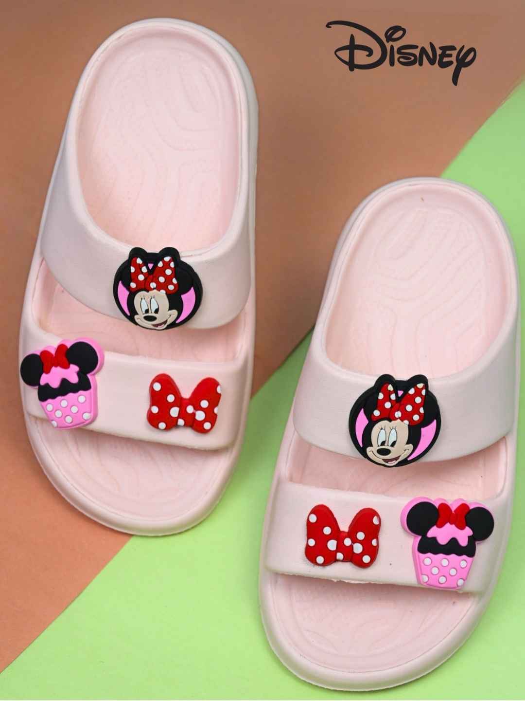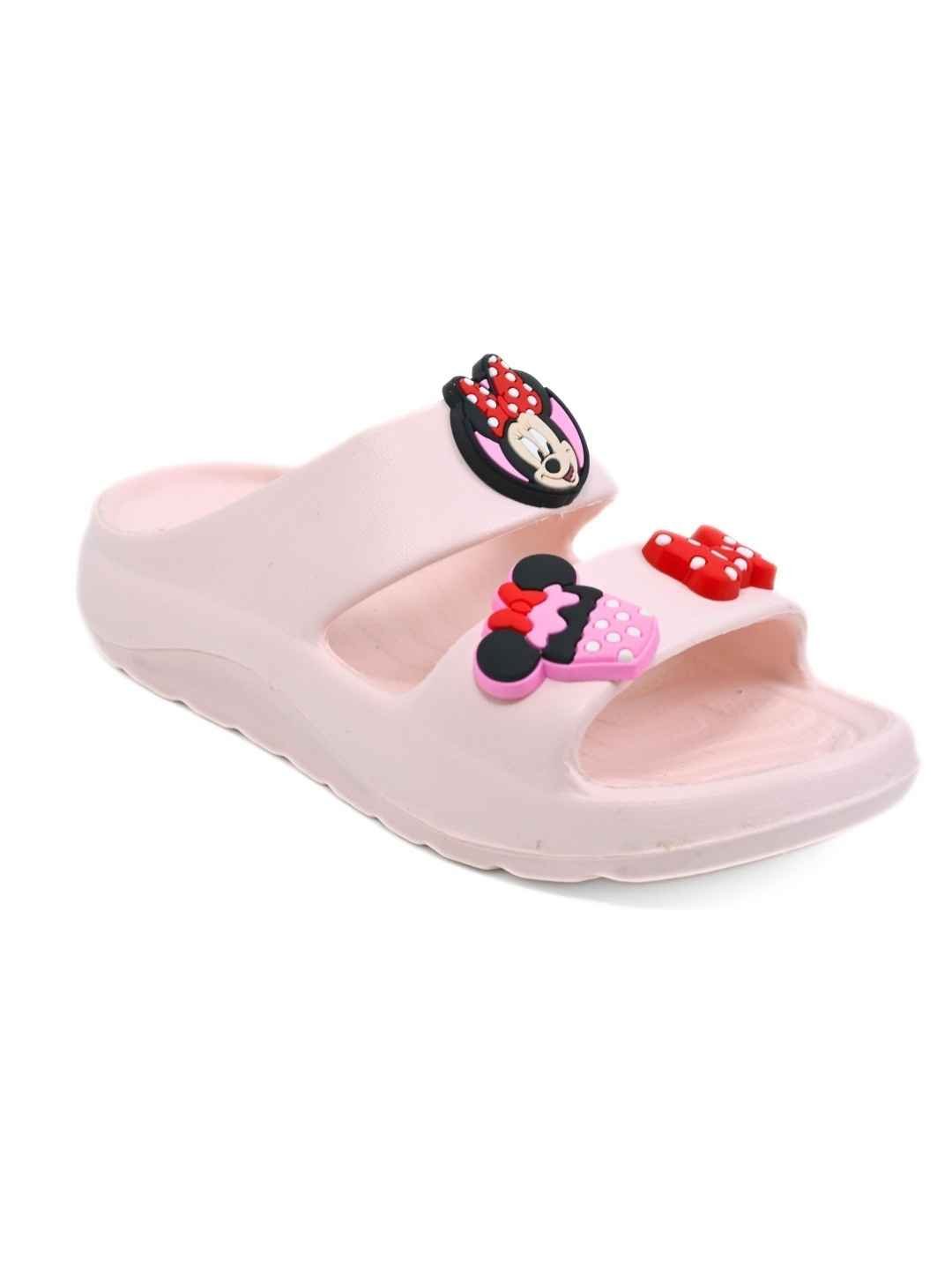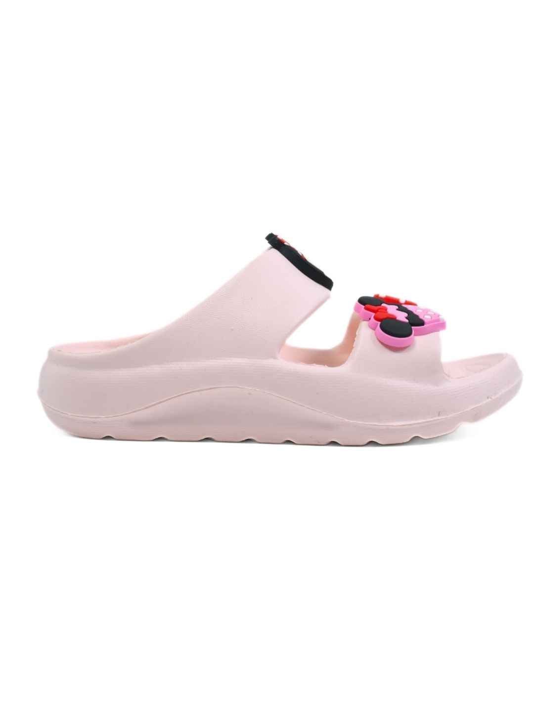 Yellow Bee Girls’ Disney Minnie Mouse Slides with Bow & Cupcake Charms- Pink