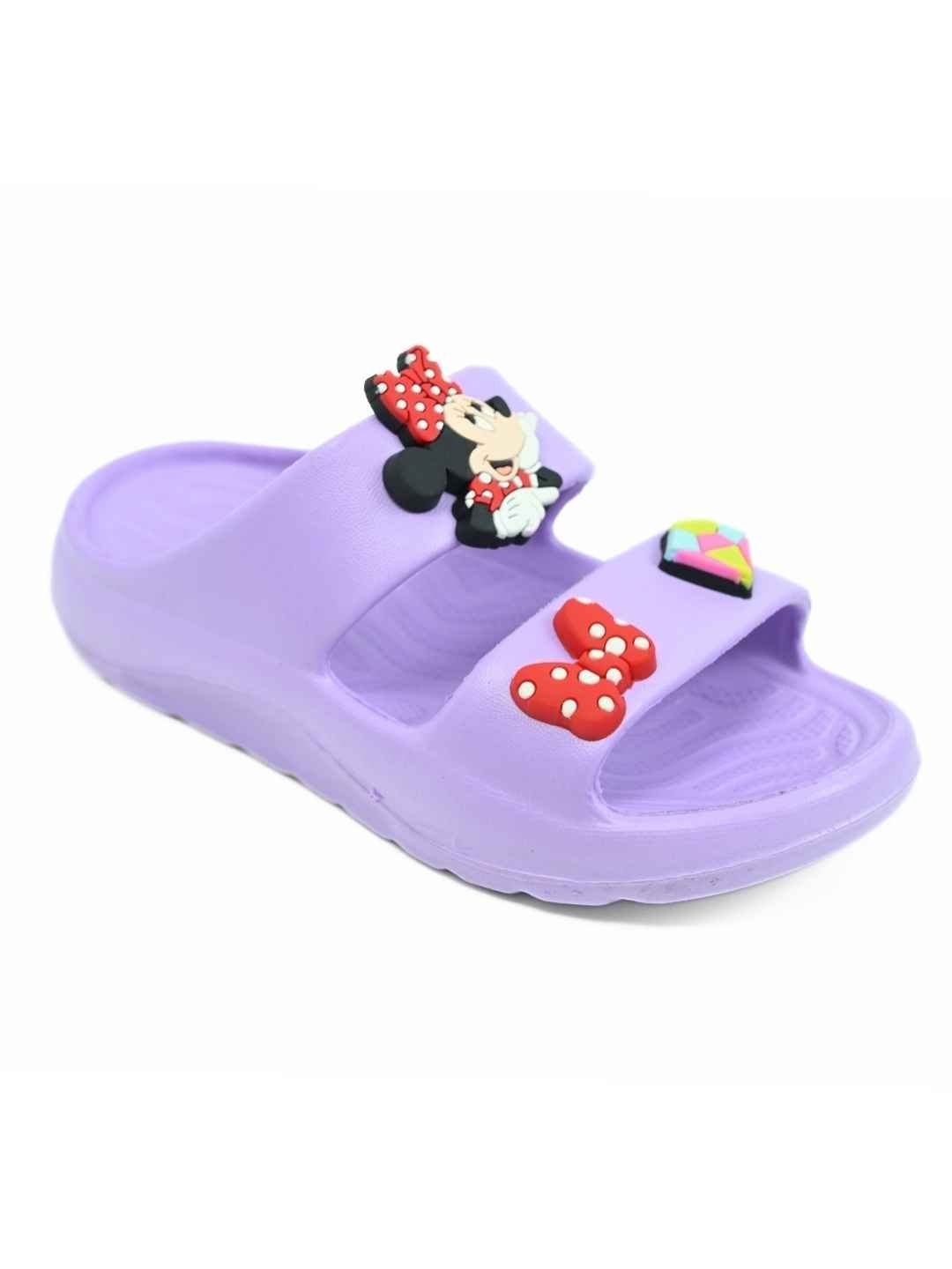 Yellow Bee Girls Disney Minnie Mouse Slides with Bow & Gem Charms- Purple